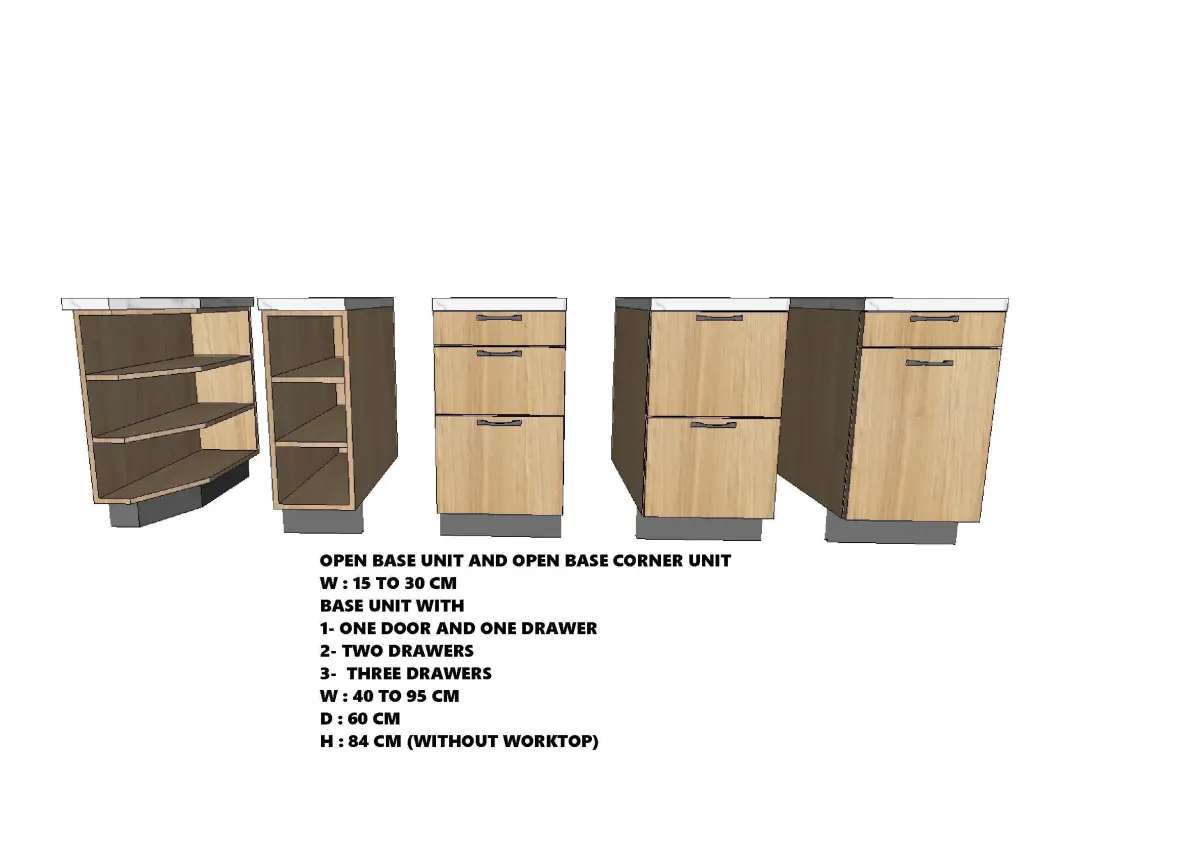 All the kitchen cabinets that you would need in your kitchen designs are in this file with all dimensions and shapes.cabinet with door, drawer, tall unit . . . . . . . .design your kitchen easily and quickly.
