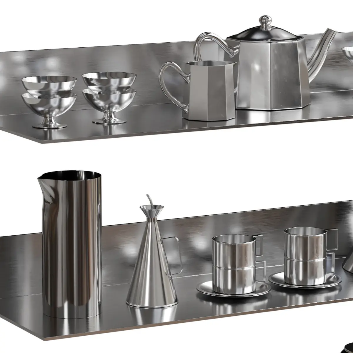 Some objects have a Turbosmooth modifier enabled during render with 1-2 itinerations for smoothing the geometry. It can be adjusted at your discretion.