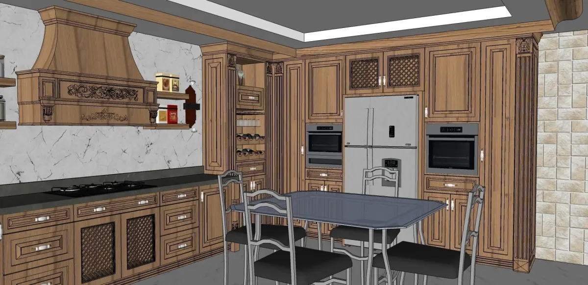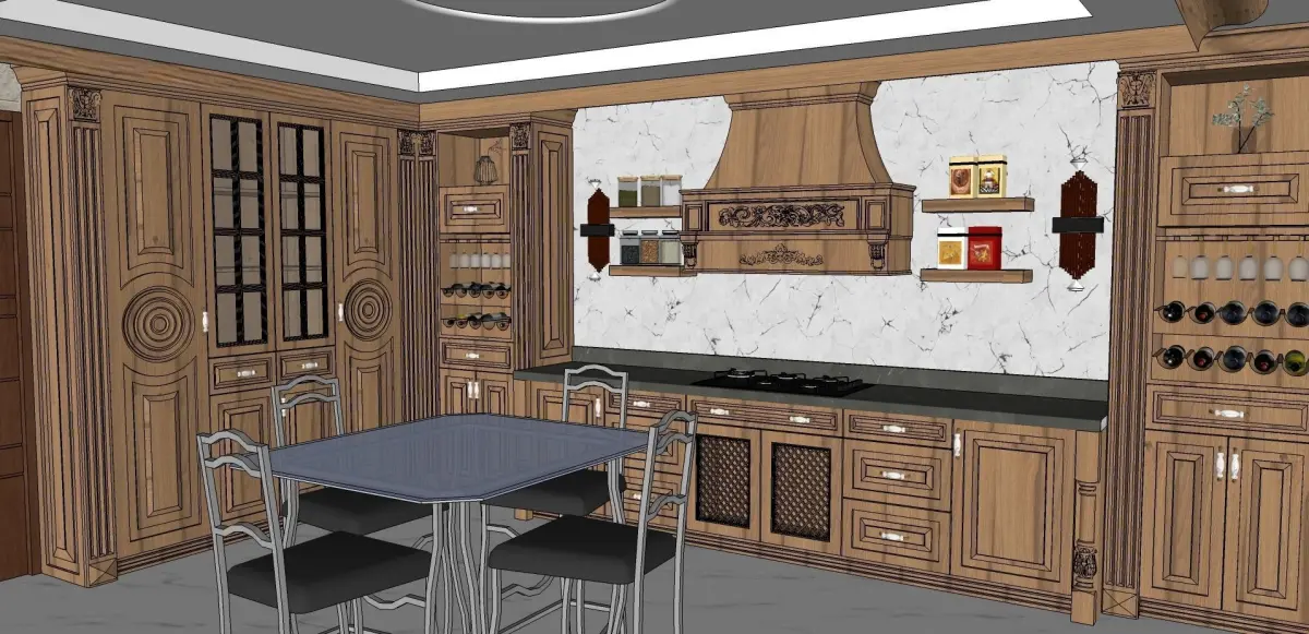 classic cabinet modeling for interior design kitchen the wood material - style modeling Classic with sketchup and Export the 3ds max softwareModeling by sketchup