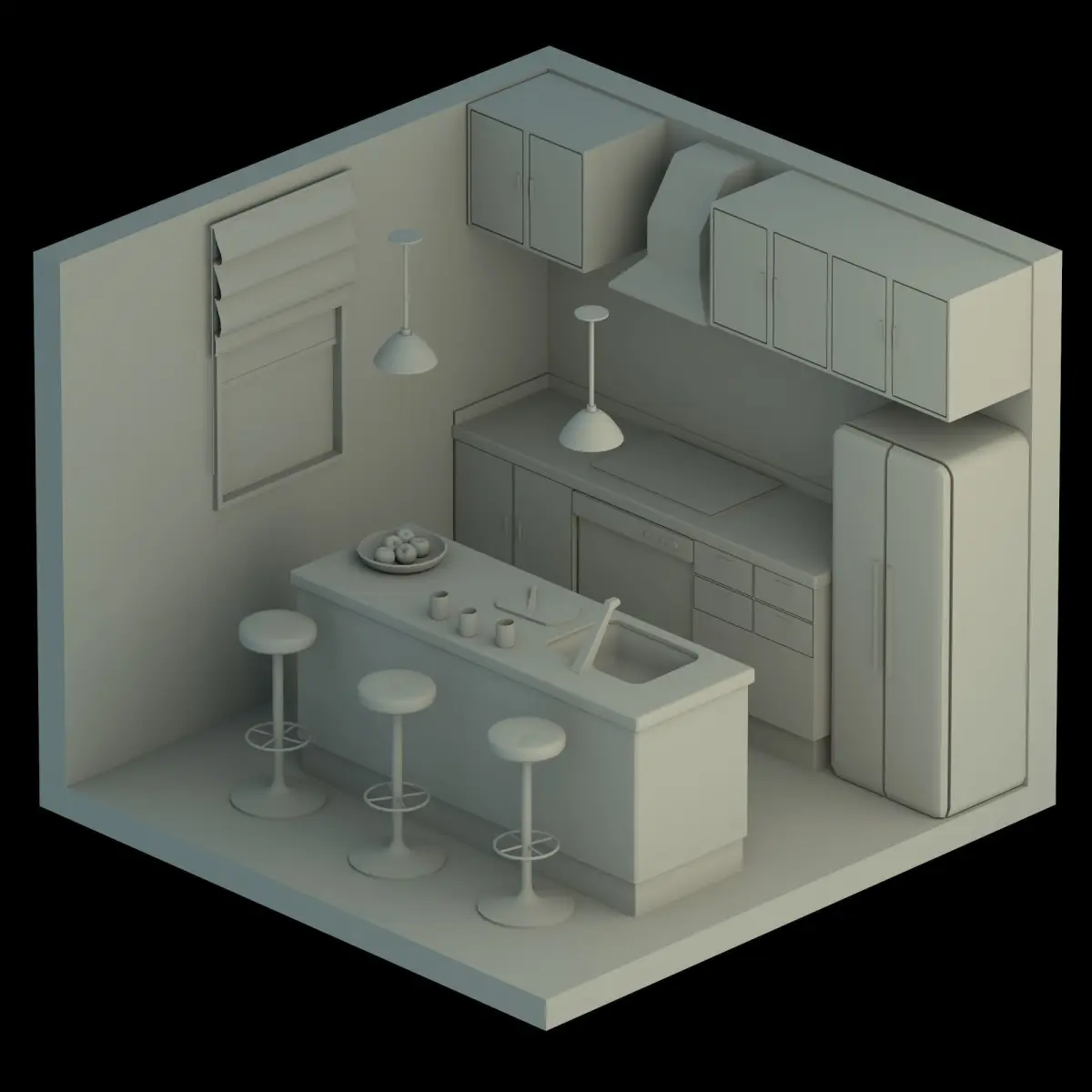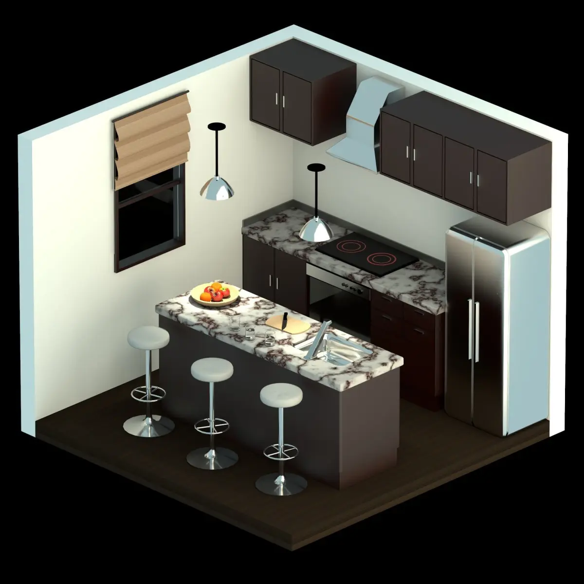 Kitchen living style, fruits, orthographic view, chair, table, window, floor, wall, lights, fridge, knife, lamp,materials, realistic 3D build in Maya 2017 with Vray rendering. Thank you for view at least, i hope you guys like my modeling and can improve more thanks alot cgtrader giving me chance to learn.