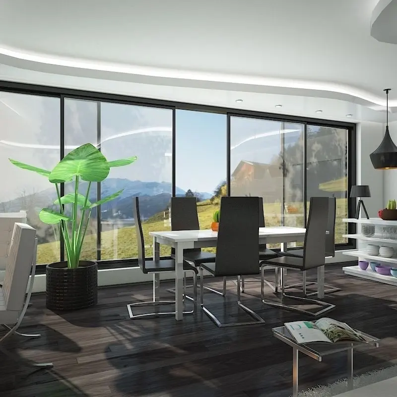 * Interior Scene - Kitchen, Dining And Living Room