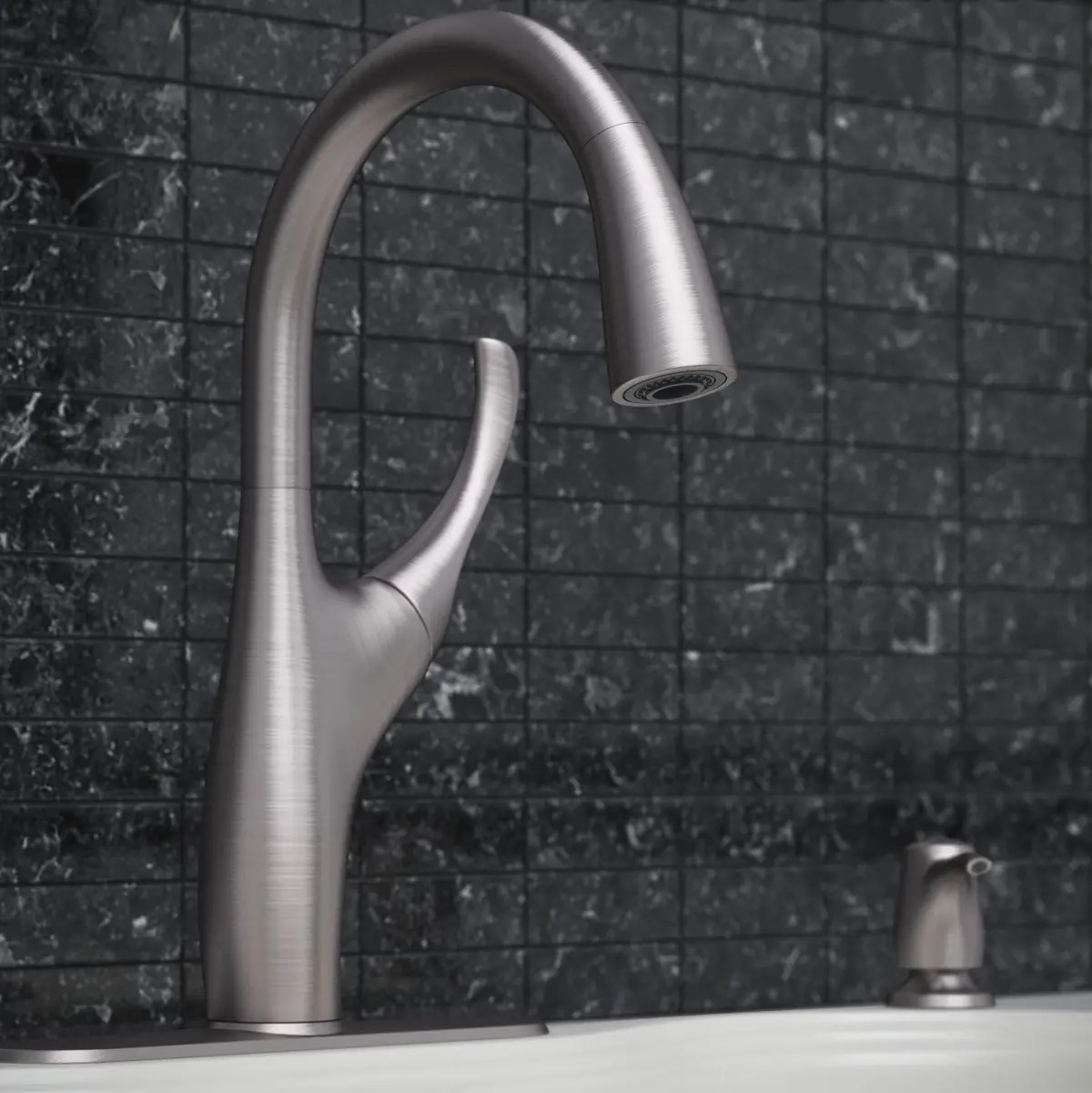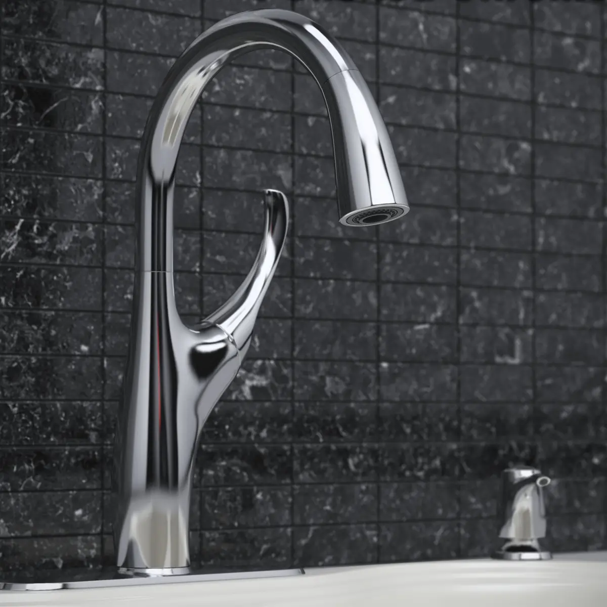 Kitchen faucet and sink 3D Model.--------------------------------------------------High quality model of kitchen faucet Kohler Mazz and kitchen sink Kohler Hartland.For the faucet there are two materials - Polished Chrome and Vibrant Stainless. Material for the sink include Composite Map with 16 different colors. --------------------------------------------------Model created in 3DsMax 2014 and resaved for 3dsMax 2010. Rendered with Vray 2.4.Materials set up for Vray 2.4. Model has proper real world scale. Materials, objects and textures has unique and meaningful names.All pivot points positioned in the right spot and oriented properly. -------------------------------------------------- File list:• *.max version 2014 and 2010 - with materials for V-ray 2.4 or higher;• *.fbx and *.obj without materials; • 3DsMax material library version 2014;• archive with textures;• archive with previews.