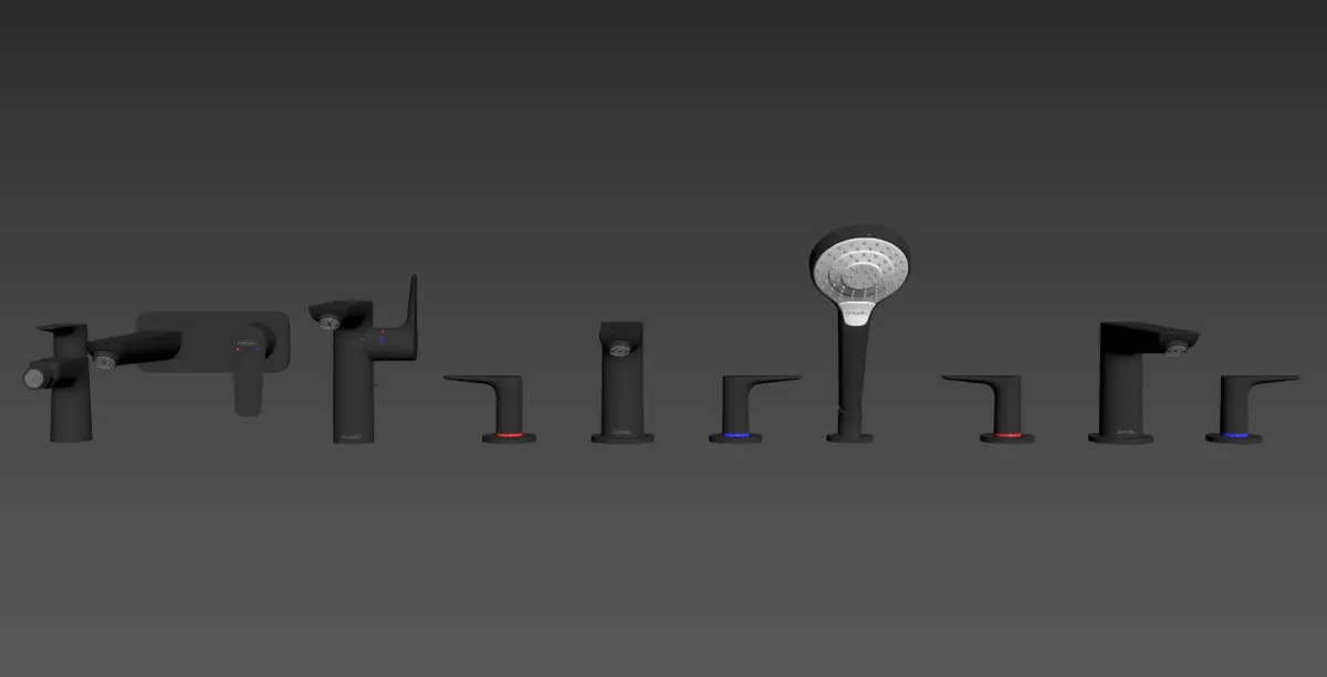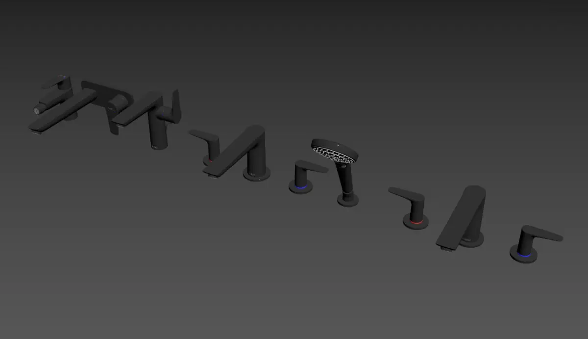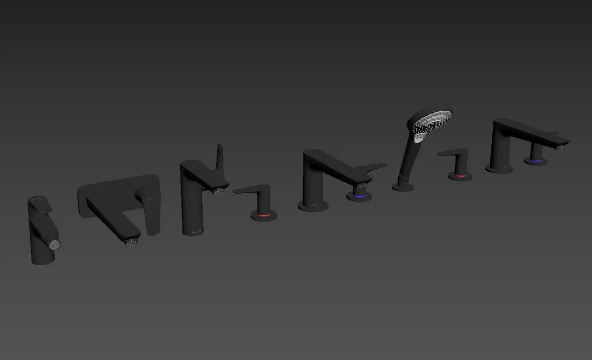 1) Talis E Single lever basin mixer SM, spout 225 mmArt. No. 717340002) Talis E Single lever basin mixer 150 with pop-up wasteArt. No. 717540003) Talis E Single lever bidet mixer with pull-out wasteArt. No. 717210004) Talis E 3-hole basin mixerArt. No. 717470005) Talis E 4-hole basin mixerArt. No. 71748000In vray version, BRDF materials are installed in Microfacet GTR / GGX, vray 2.4 owners must install BRDF in Blinn.