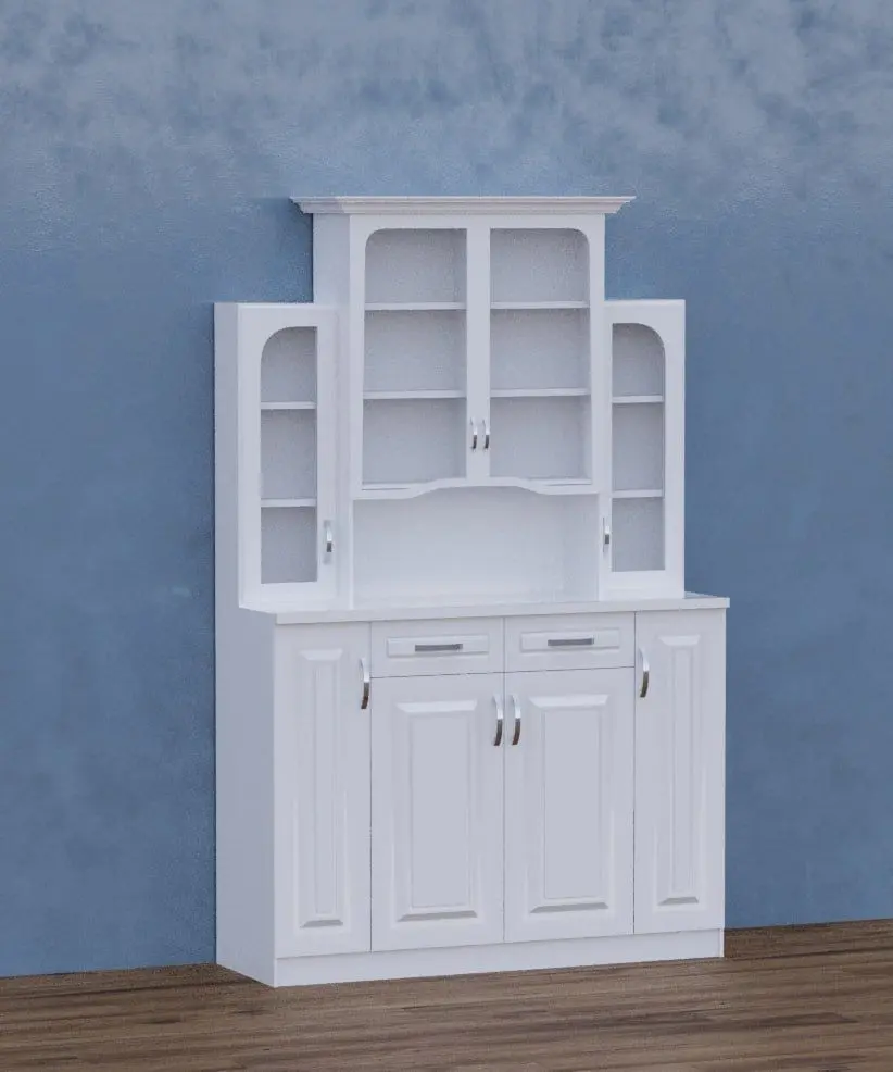 This 3D model features a stunning set of kitchen cupboards designed in a blend of classic and neoclassical styles, offering a timeless and elegant aesthetic. The cupboards are characterized by intricate detailing, such as crown moldings, paneling, and decorative trims, which evoke the sophistication of traditional design.