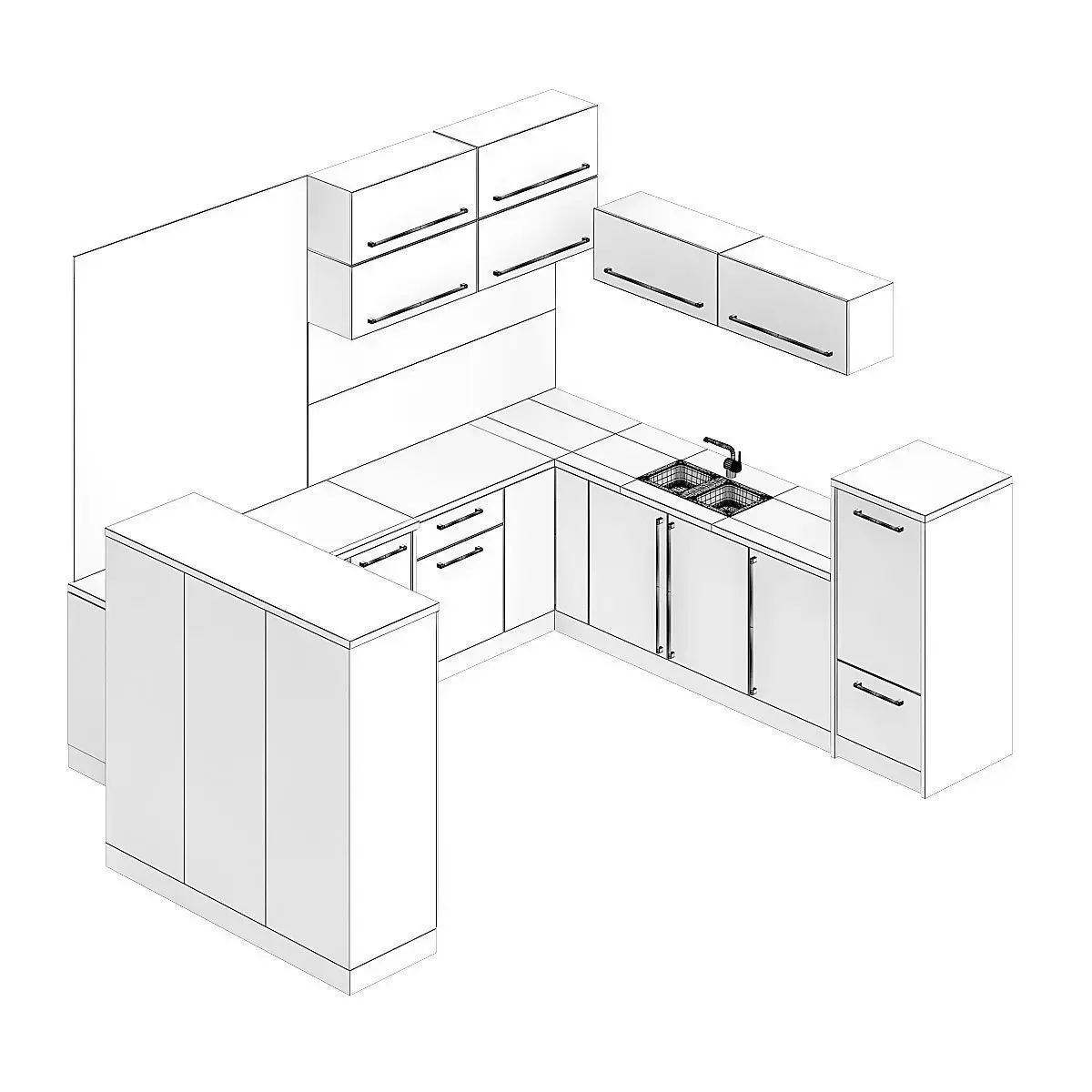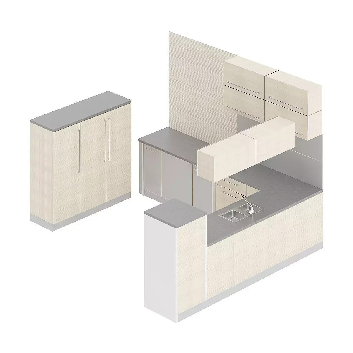 3d model of kitchen furniture set with light wooden fronts and grey countertop. Compatible with 3ds max 2010 or higher and many others.