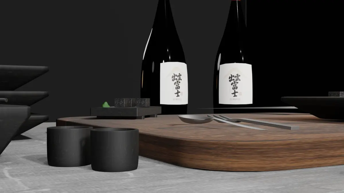 2 sake bottles3 dinner plates1 small plate1 bowl2 sake cups2 soy sauce cups (with soy sauce)6 salmon sushi pieces1 cutting board1 fork1 spoon1 authentic japanese cooking knifewasabi2 authentic chopsticks