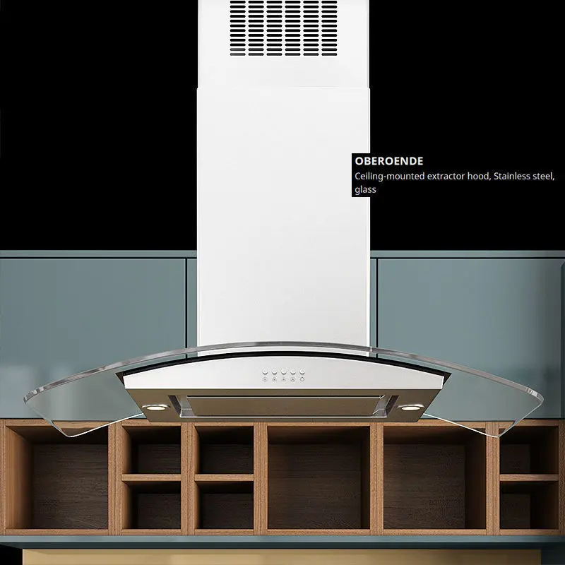 OBEROENDE: Ceiling-mounted extractor hood, Stainless steel, glass