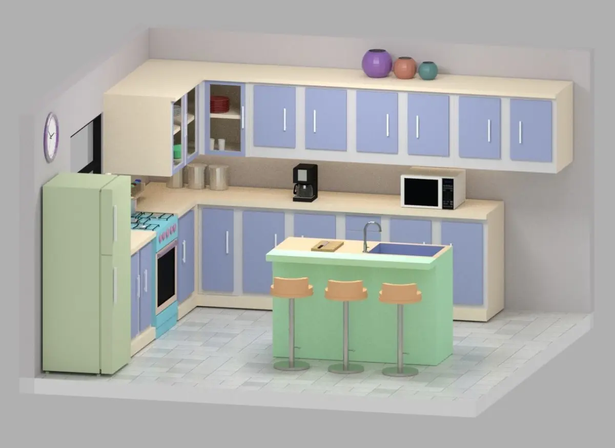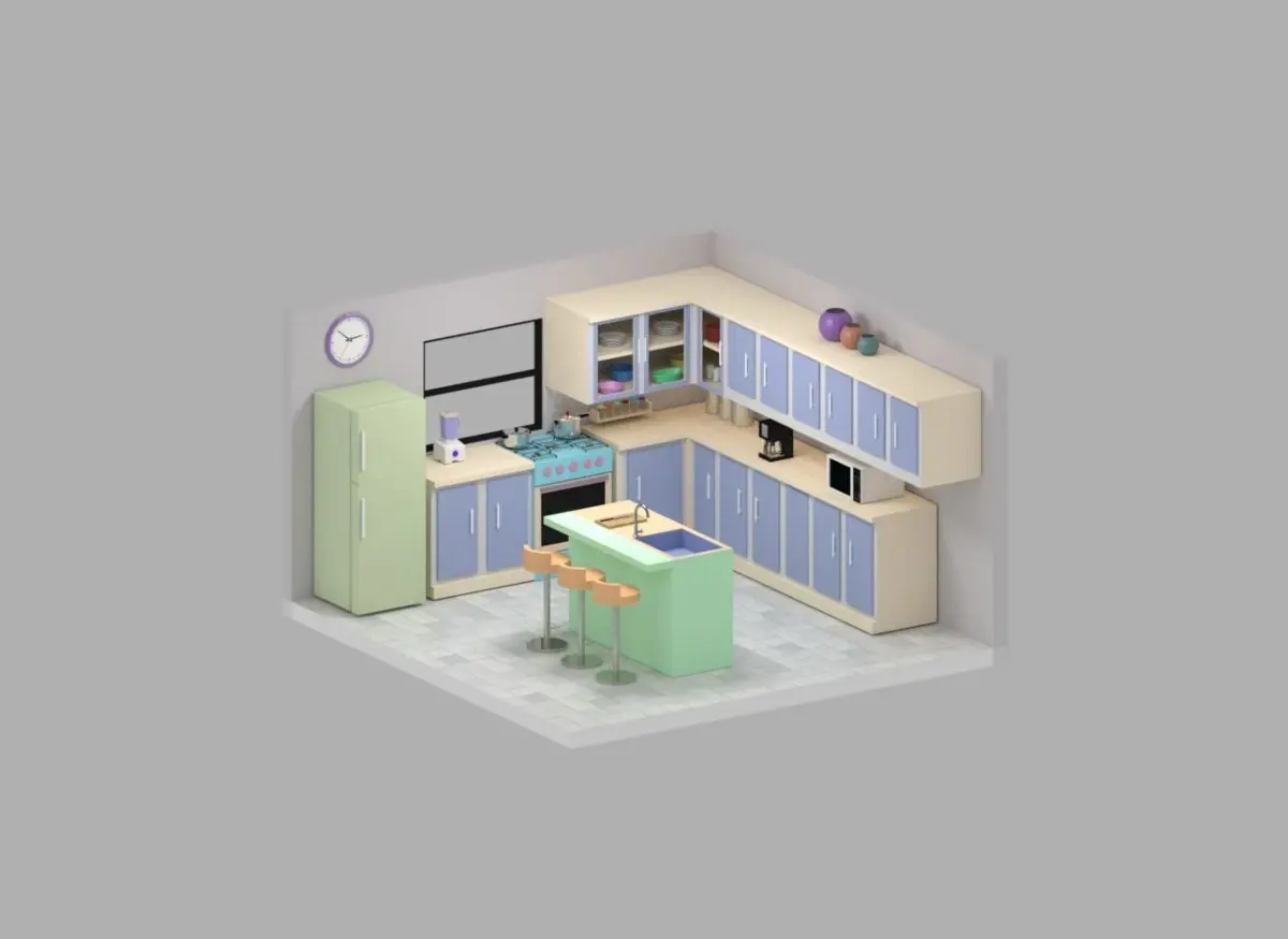 Low Poly KitchenIsometric roomCartoon Kitchen