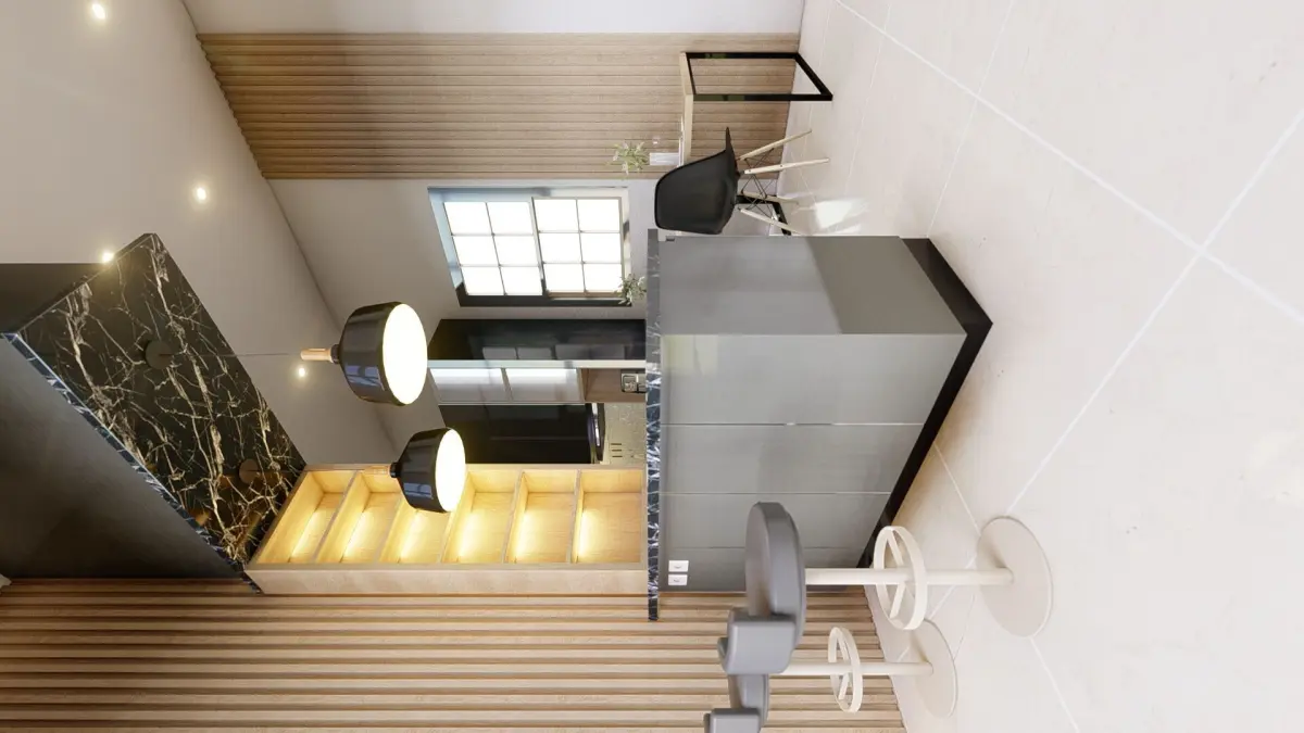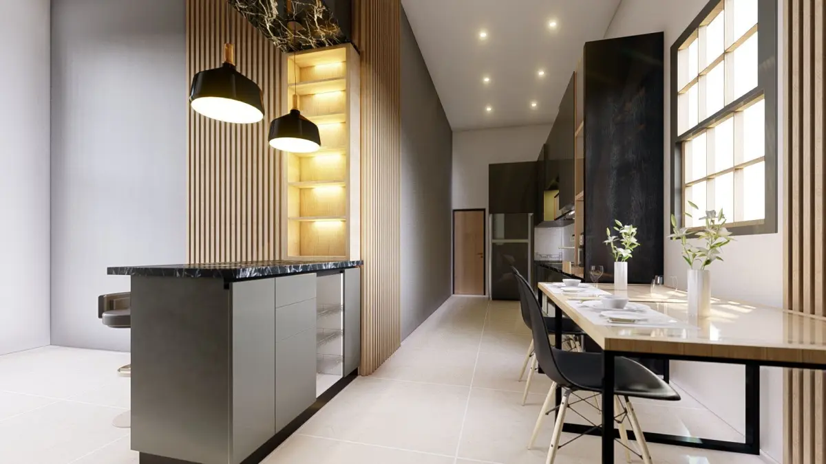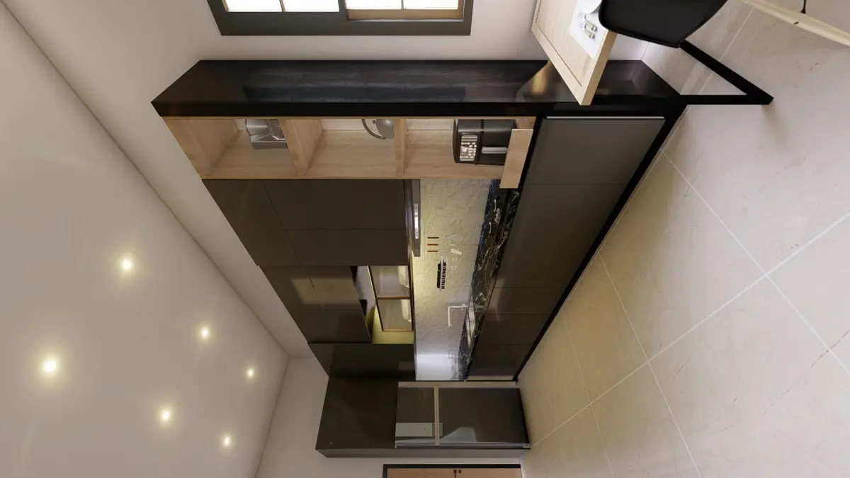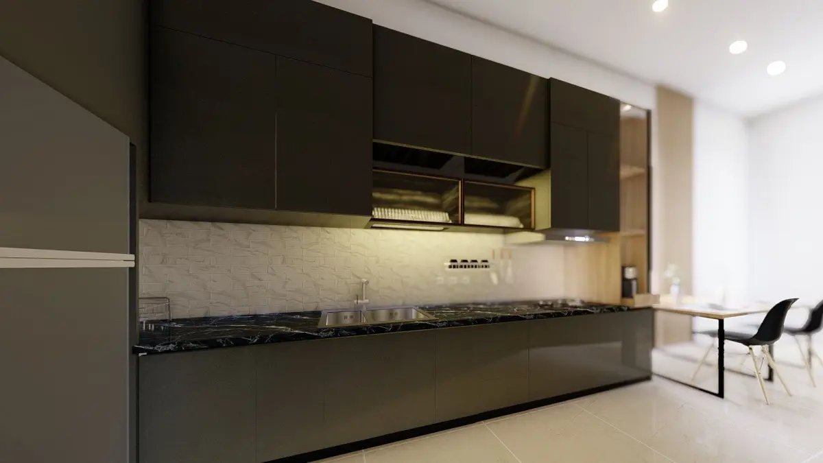 This is a minimalist kitchen with BLACK color, we use SketchUp as modeling and Lumion 10 for rendering