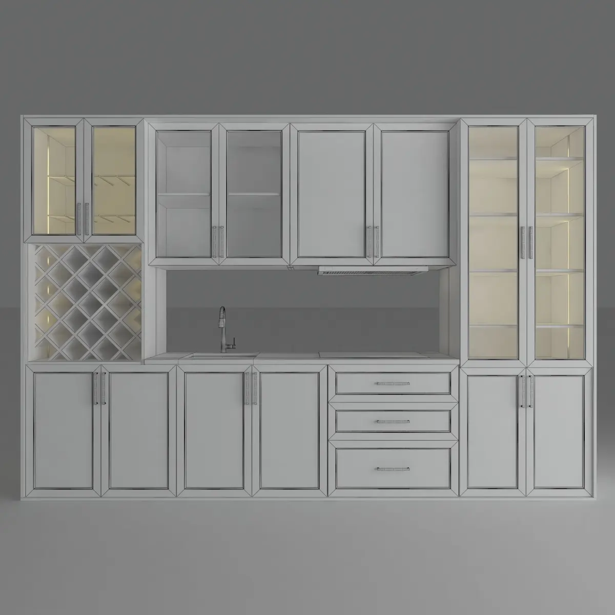Oshxona mebeli (Kitchen_Model_5) yarim klassik va yarim zamoniv uslubda qilingan.