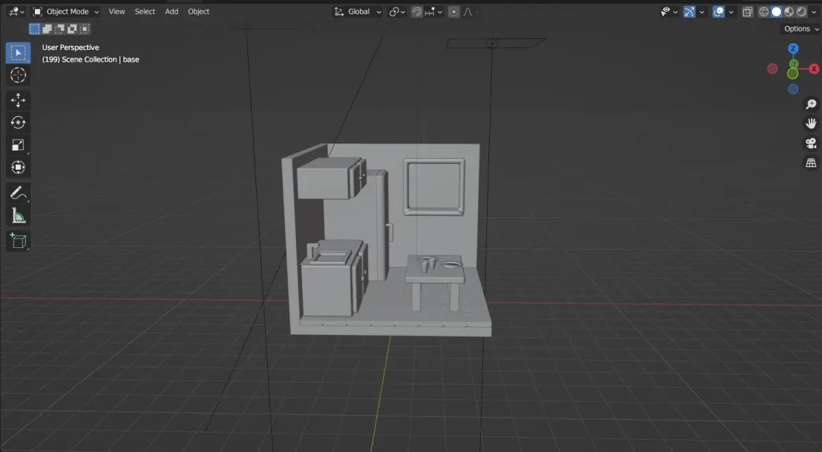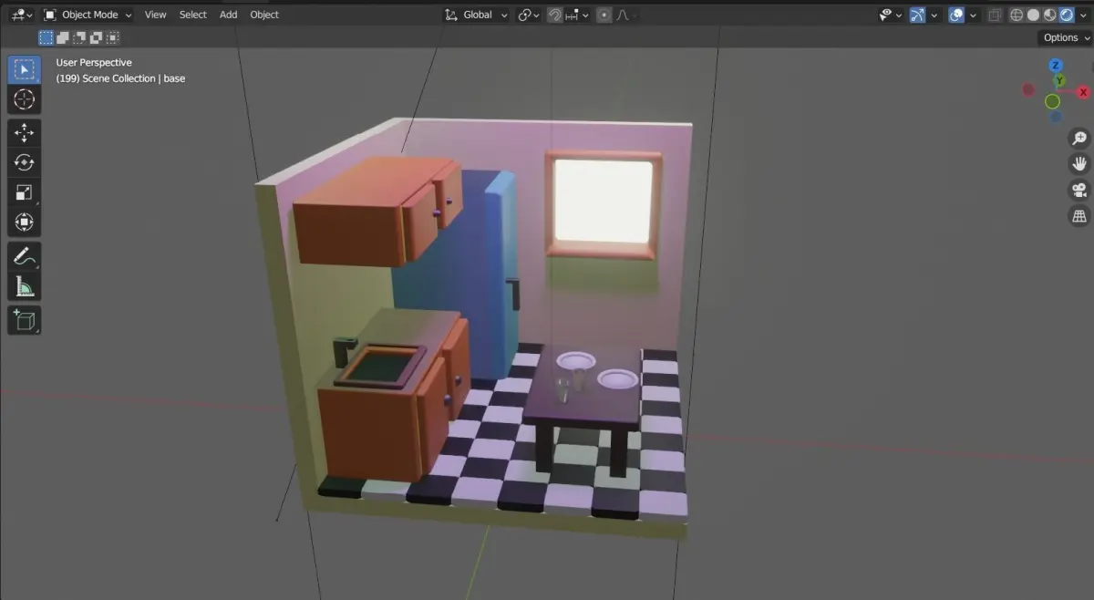 This is a 3d kitchen model. You can use it in 3 file formats. obj, fbx and stl. The kitchen is as seen in the picture. It has two walls, one table, two cupboards. Floor has checkerboard pattern. If you want any modifications feel free to contact me...