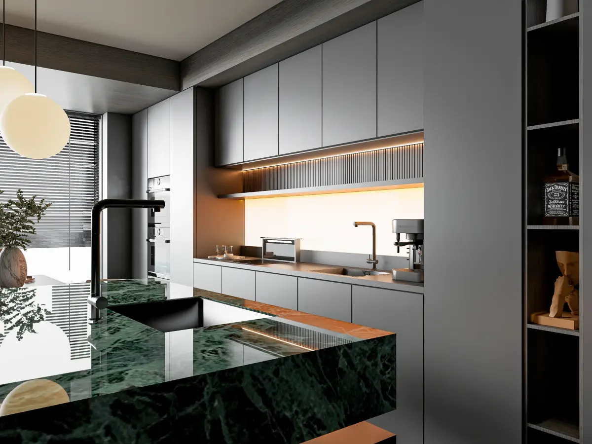 Look no further! Our Kitchen Modeling and Rendering Scene is the perfect solution for architects, interior designers, and other professionals who need a stunning, photorealistic visualization of their kitchen designs. This scene features a fully modeled kitchen with custom cabinets, appliances, and lighting fixtures, all designed to look and function like the real thing. The scene is fully optimized, for produce stunning results with minimal tweaking. And the best part? This scene is available for purchase right now! Whether you're working on a personal project or a client commission, this ready-to-render scene will save you time and effort, allowing you to focus on what really matters - creating beautiful and functional kitchen designs. So don't wait - purchase our Modeling and Rendering Scene today and take your kitchen design projects to the next level!