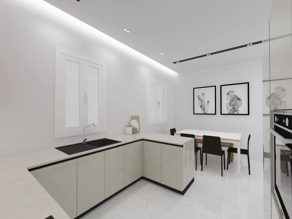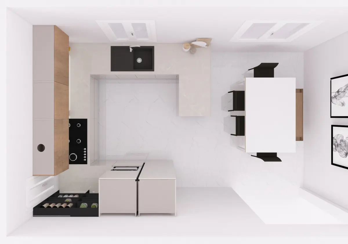 Hello! This Kitchen is in a modern-contemporary style. Outstanding lighting techniques, elegant detail patterns combined with natural materials such as wood provide a unique and luxurious ambiance