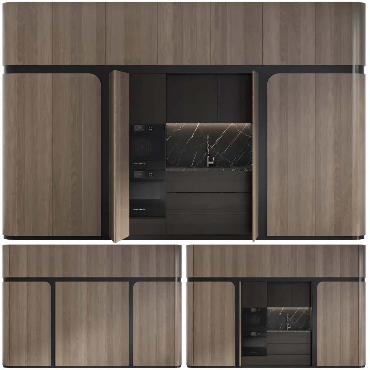the model includes different objects like Fisher & Paykel oven, gas, faucet, sink