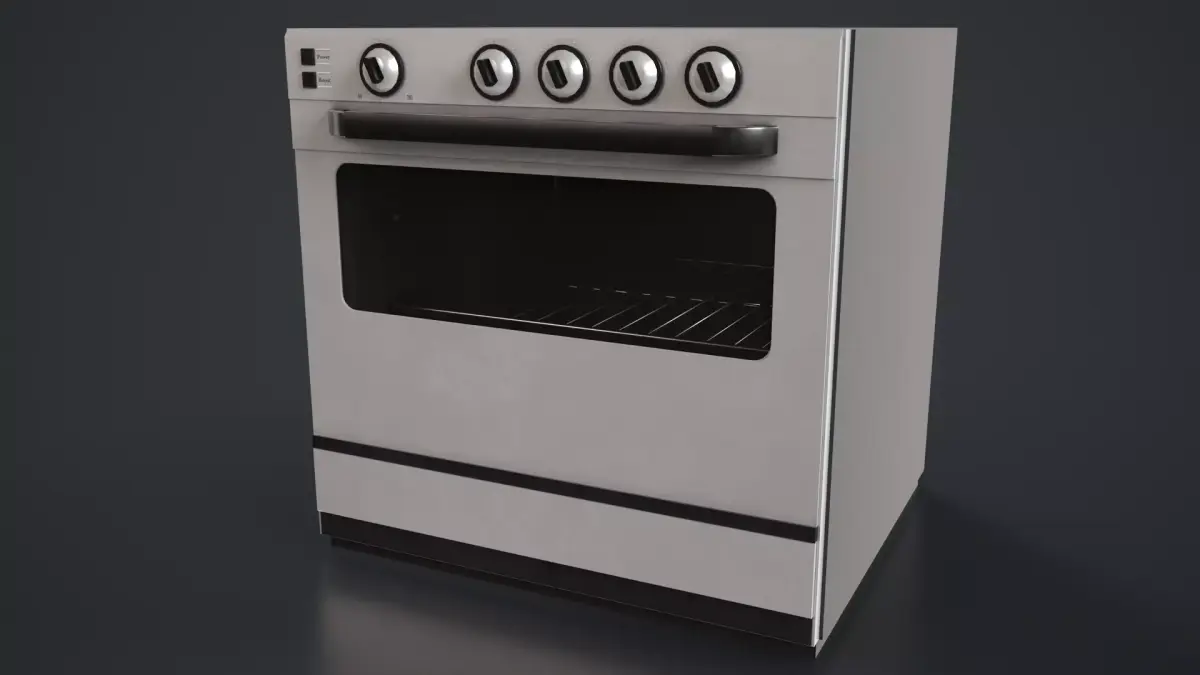 A classic, slightly vintage kitchen oven designed for realistic interior environments. Its proportions, slimmer glass window, and traditional control layout recreate the look of older household appliances while remaining suitable for both modern and retro-style kitchens.