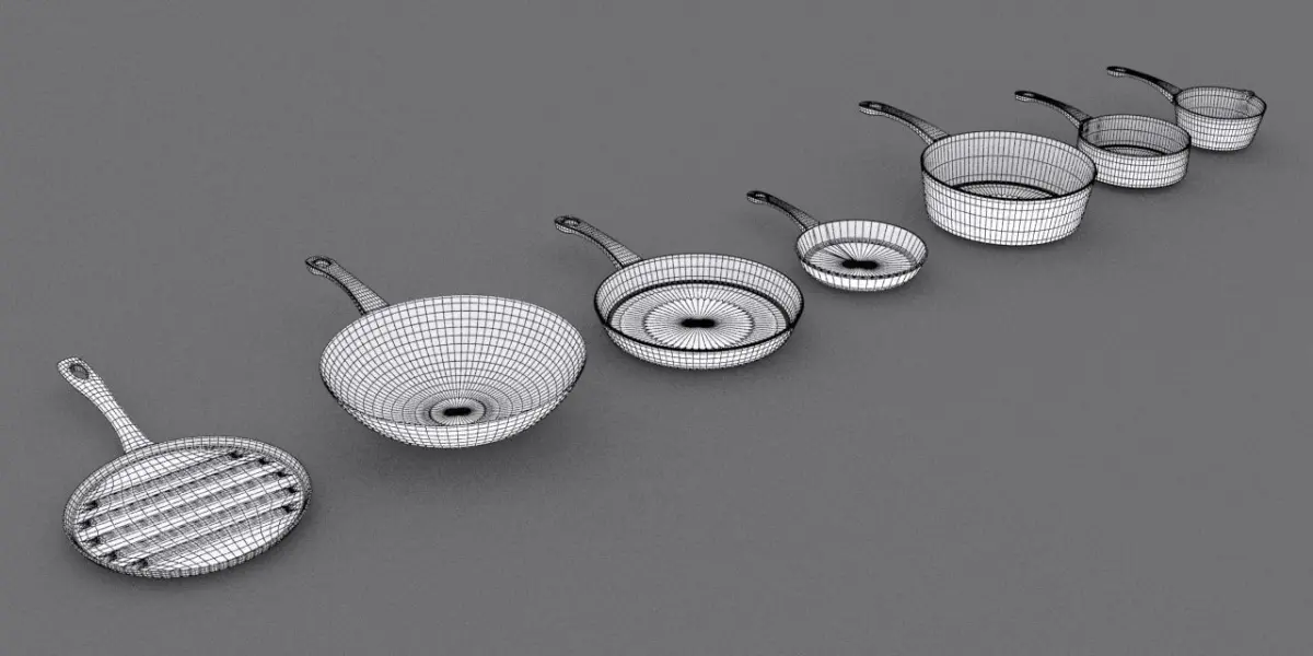 Kitchen Pan Set. Simple texturing and easy color change. All materials are Max standard. All maps included.