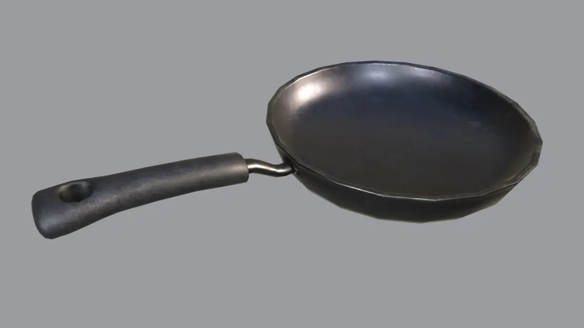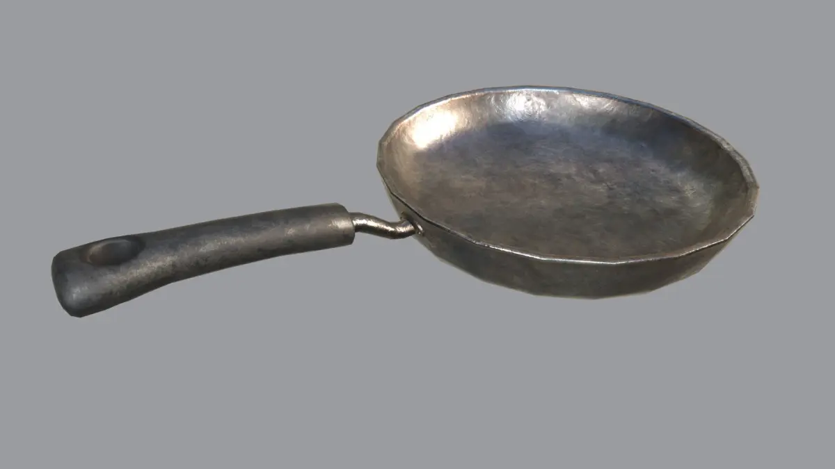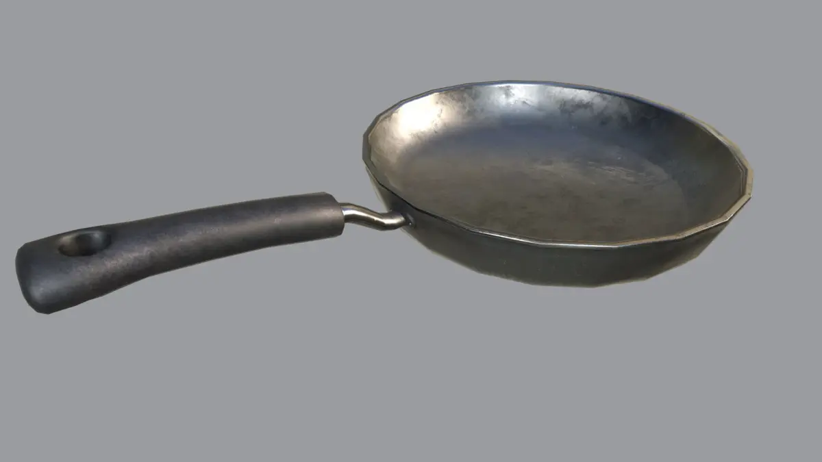 Very Detailed Kitchen Frying Pan with 5 Different Material Variations with Realistic High-Quality PBR Texturing, such as an Old / Rusty / Scratched / Clean Textures.