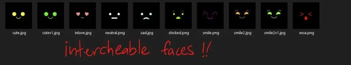 - Emission mapThe interchangeable facial expressions have their own emission textures. You can see them in details in the thumbnails above