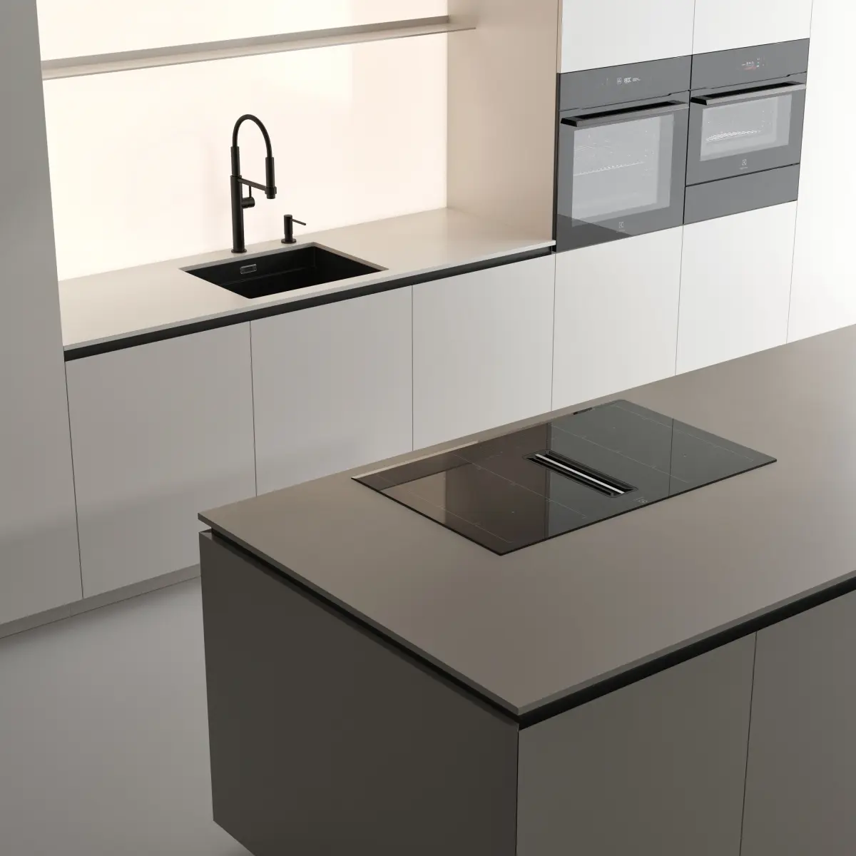 Kitchen appliances: ELECTROLUXSink and mixer tap: FRANKEKitchen size: 4800mm x 600mm x H.2700mmIsland size: 3000mm x 1050mm x H.860mmThe kitchen consists of modules that can be moved.