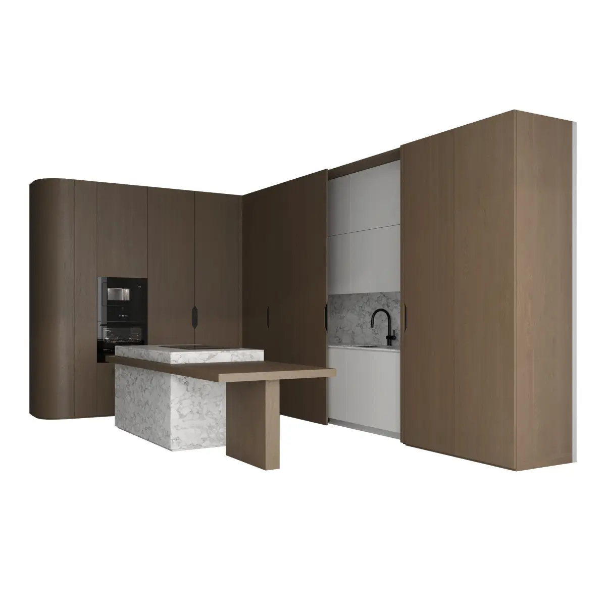 Kitchen appliances: ELECTROLUXSink and mixer tap: FRANKEKitchen size: 5150mm x 3100mm x H.2700mmIsland size: 2800mm x 1000mm x H.850mmThe kitchen consists of modules that can be moved.