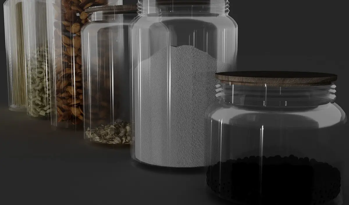 Jars for dry with pastas, macaroni, pepper, flour, flmond will perfectly fit your interior design projects