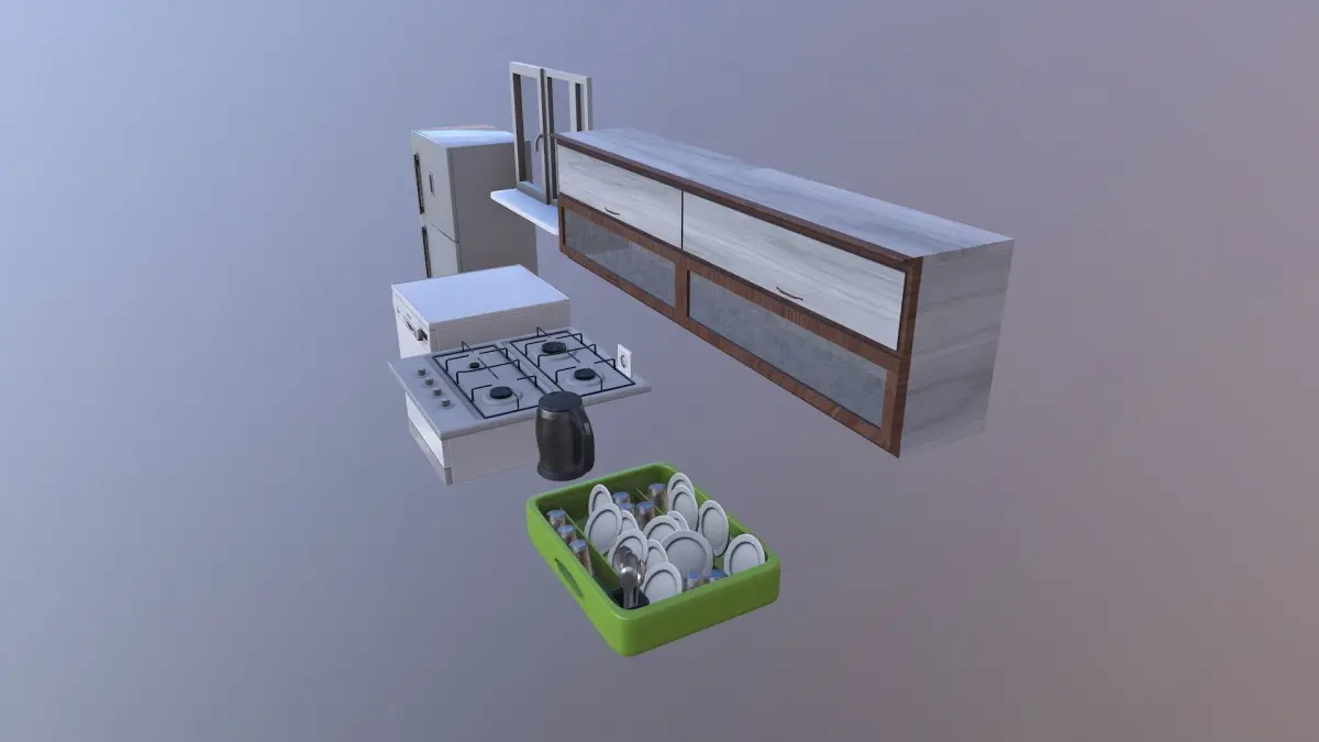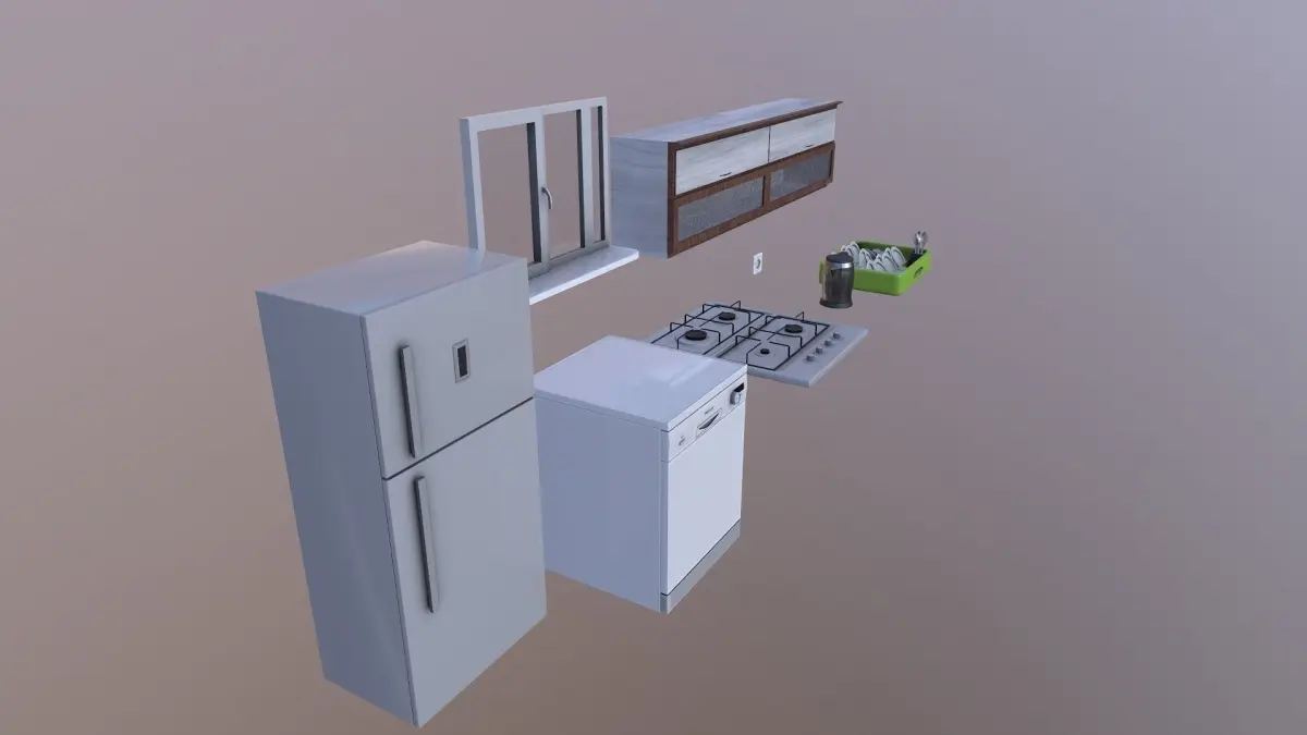 PBR game ready Kitchen Set . Texture resolution 2048x2048
