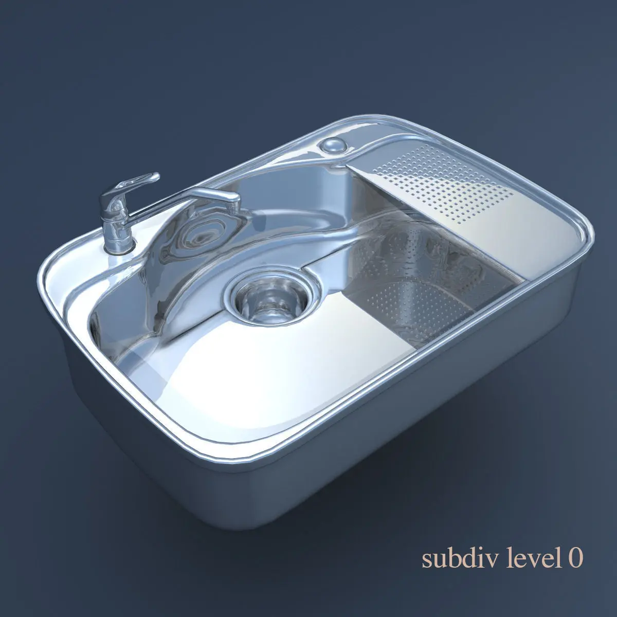 Modern stainless steel kitchen sink. This type of sinks are common in Japanese kitchens. Subdivision friendly model, originally modelled in Lightwave.