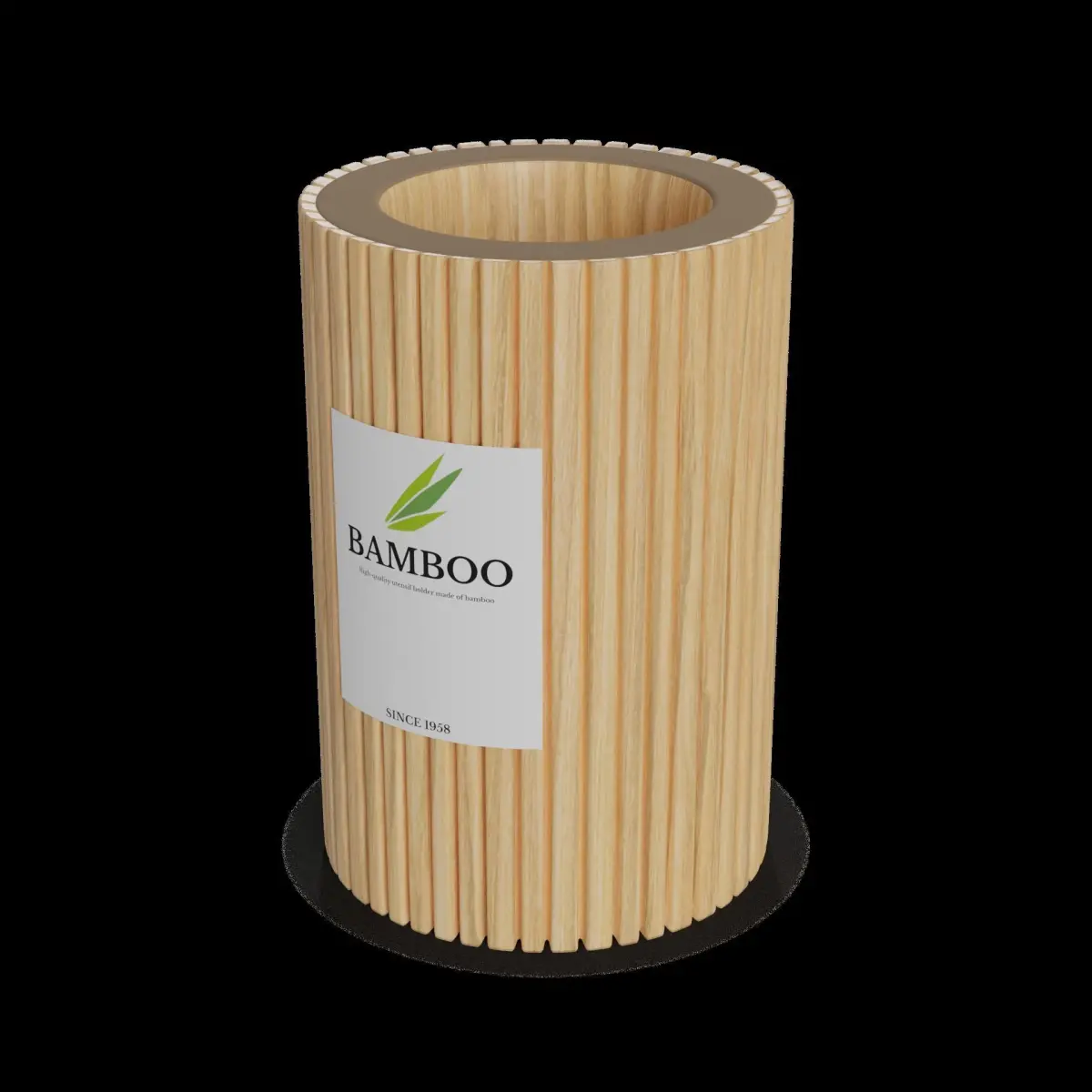 Bamboo Utensil Holder: This bamboo utensil holder is not only functional but also adds a touch of natural elegance to your kitchen. The packaging is a simple cardboard sleeve with a clear window, allowing you to see the utensil holder. The packaging also features a label with the text Eco-friendly and a graphic of utensils in the holder.