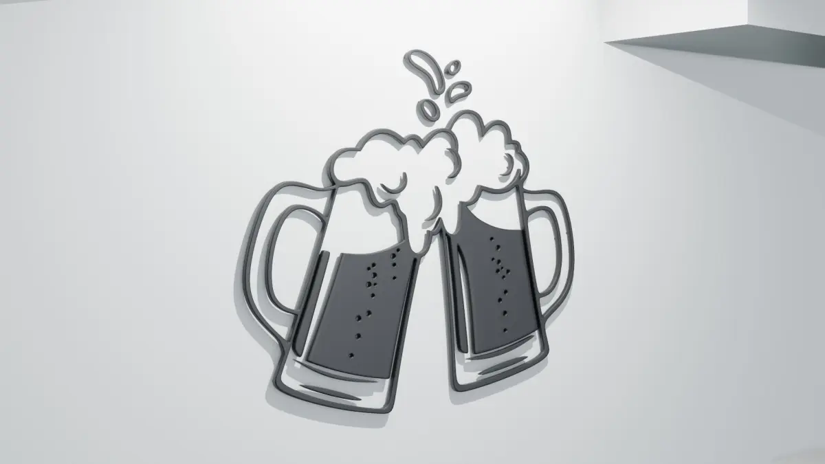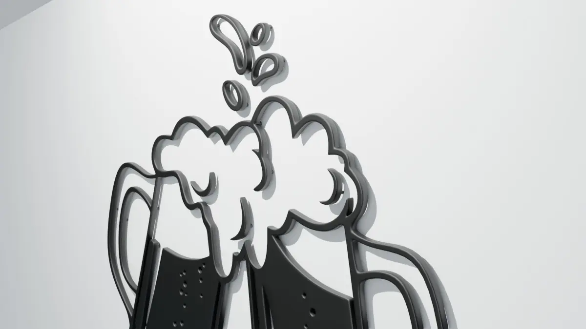 This is a model of a simple Wall Decoration - Beer Mugs (metal like).