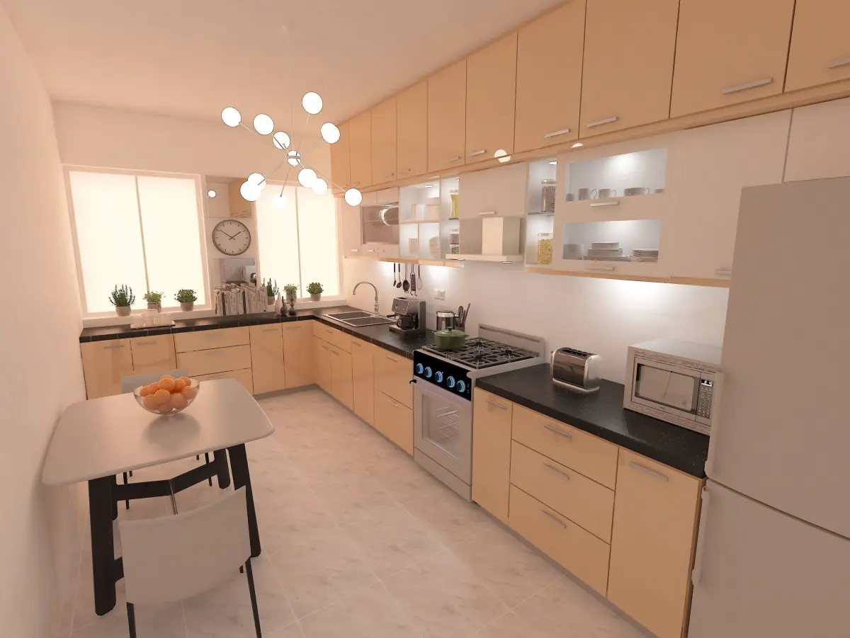 İt's a simple and useful desing for a kitchen .Tthe cabinets are special designed for the materials. can be use for game
