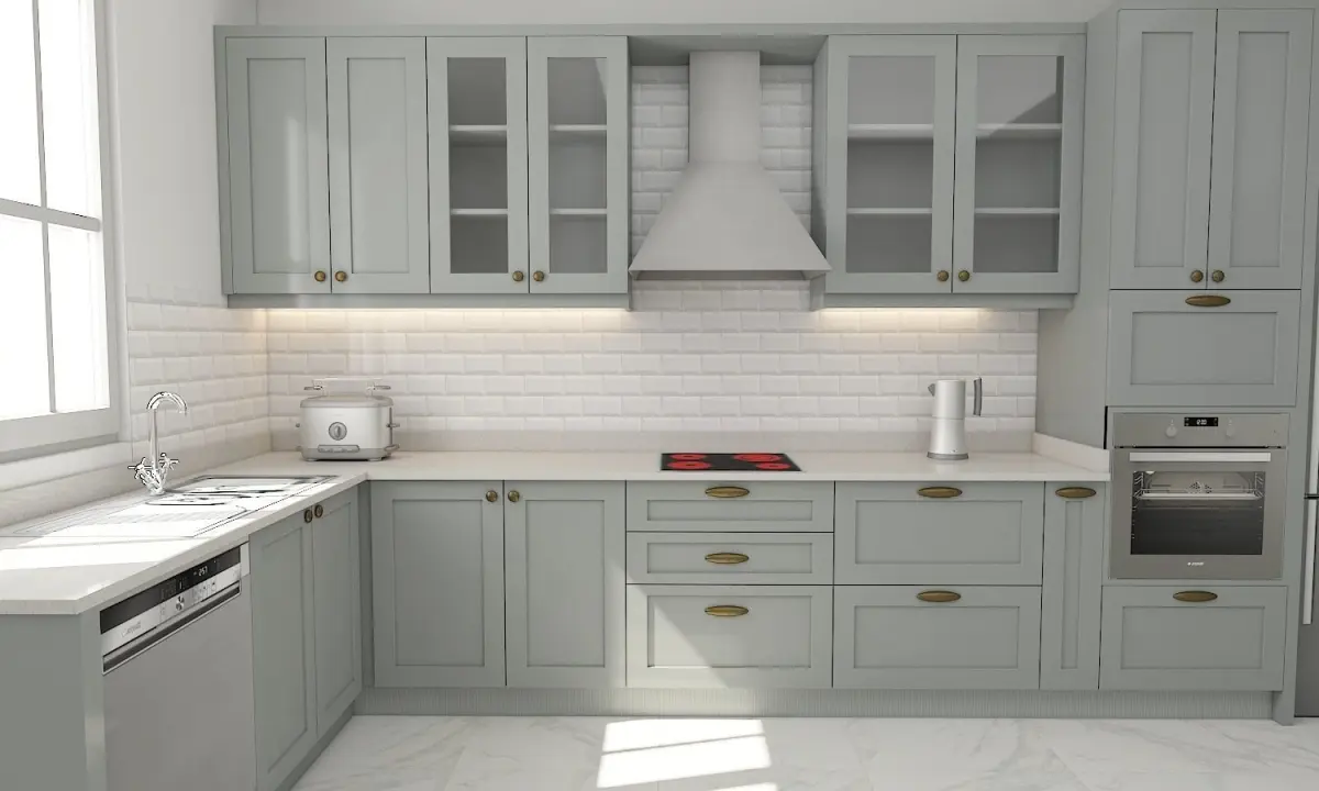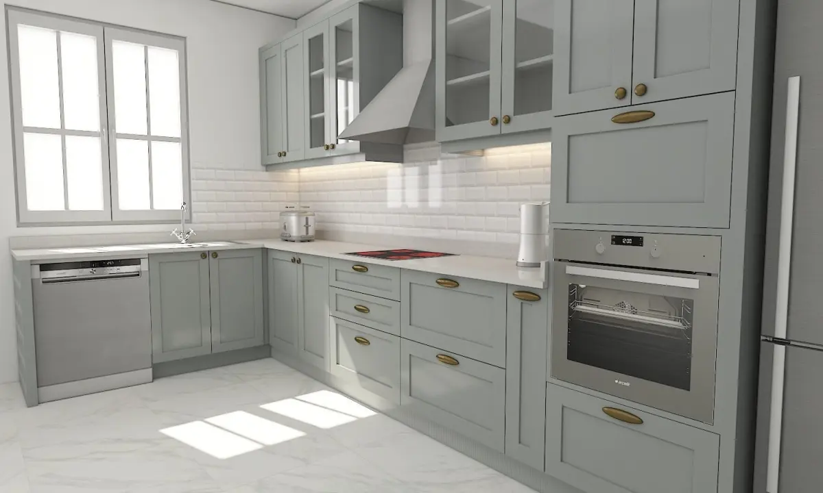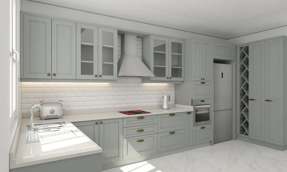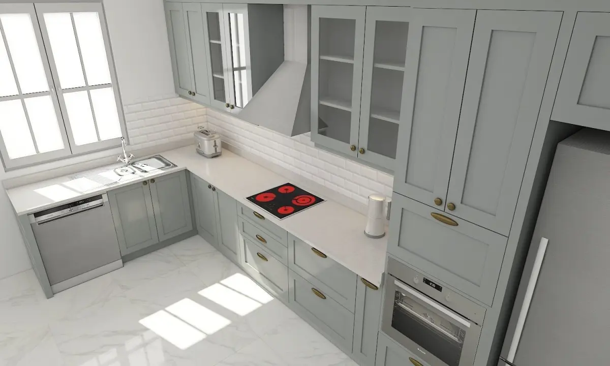 kitchen with cabinets and marble counter tops 3D model