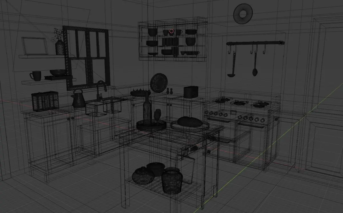 HomeCatalogKitchen with cabinets and wooden floors Free 3D model