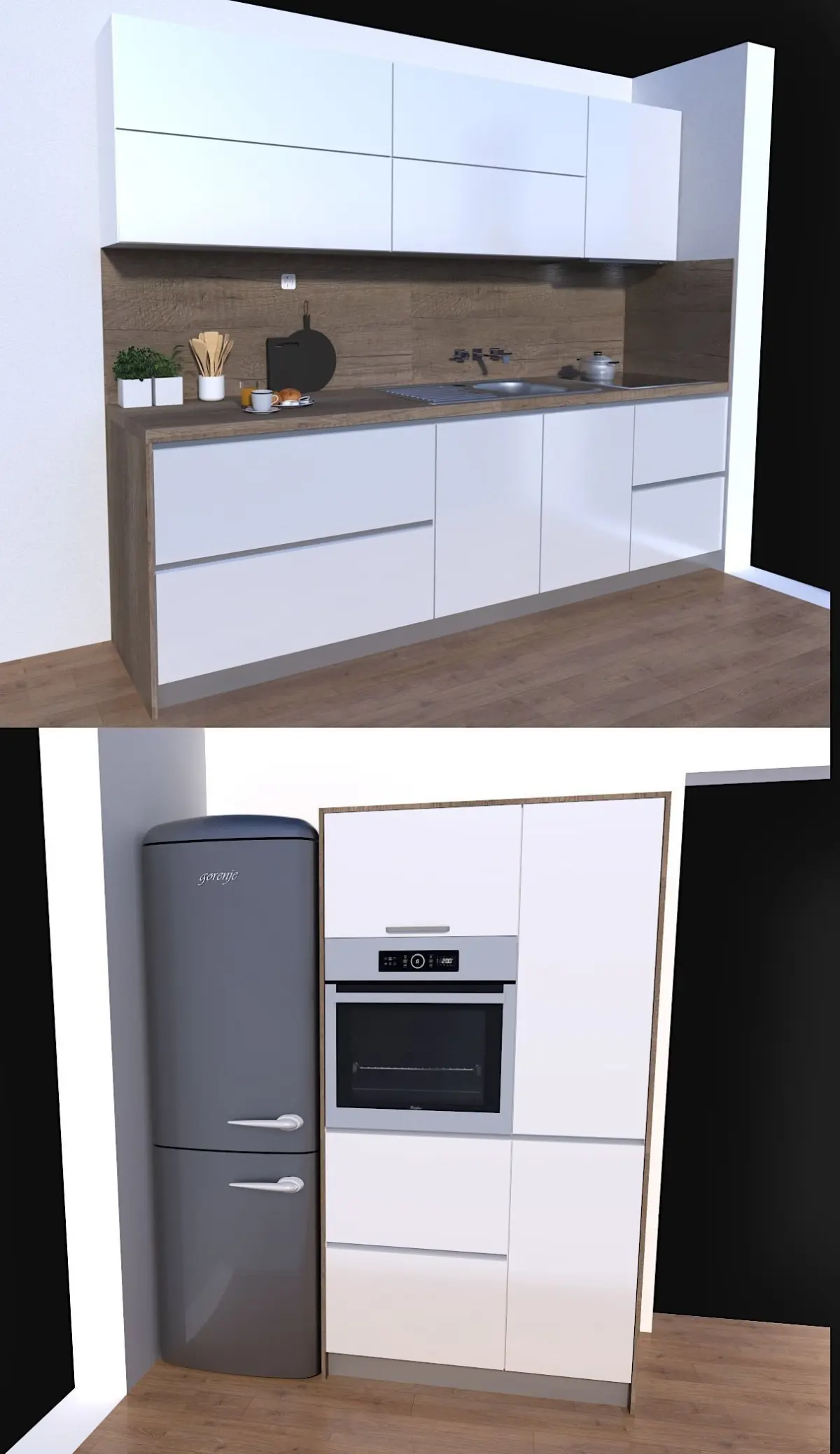 modern designed kitchen by damijan koprivc Modern kitchen.Unique, Highly detailed 3D kitchen design. Modern designed kitchen is custom made by Damijan Koprivc for a costumer. Kitchen model includes table with chairs. File include separate models: ,Owen,sink,hood ,induction plate and handle for drawers. All texture are real ,sold on market under EGGER or KAINDL trademark. 3D KITCHEN Model is done with sketch up and rendered with vray 3.4. Materials/textures are attached together in zip file . All textures ,appliances and furniture equipment is in high resolution,have been checked and are included in scene. Model is easy to manipulate and ready to render with V-ray. Real world scale and exact proportions cm. Realistic and correctly scaled ! • Excellent polygon & texture efficiency Great deal for low price.You get this 3D model kitchen design in formats: skp,... Additional Textures provided with the model: