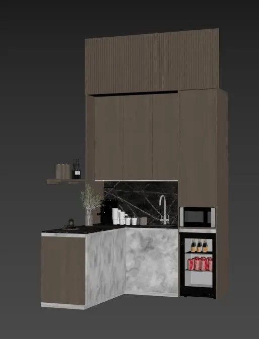 Elevate your interior design projects with our meticulously crafted 3D model featuring Kitchenette. This high-quality model offers an immersive visualization of contemporary .Whether you're an interior designer, architect, or enthusiast, this 3D model is a versatile asset that can breathe life into your presentations, portfolio, or creative ventures. Showcase your design concepts with confidence, impressing clients and audiences alike.Crafted with meticulous attention to detail also we used wood and black marble to give the model a modern feel , this 3D model is optimized for both luxurious and functionality. Seamlessly integrate it into your projects, leveraging the power of modern technology to transform visions into captivating realities.