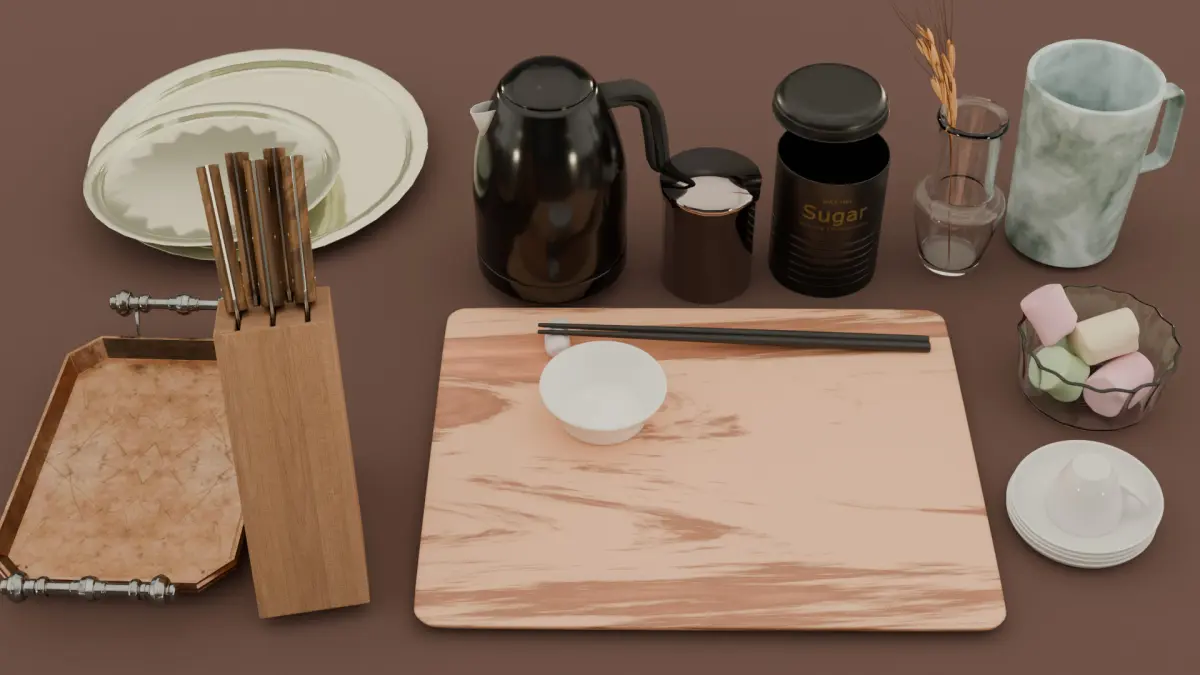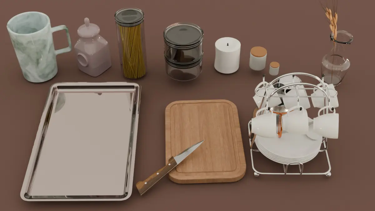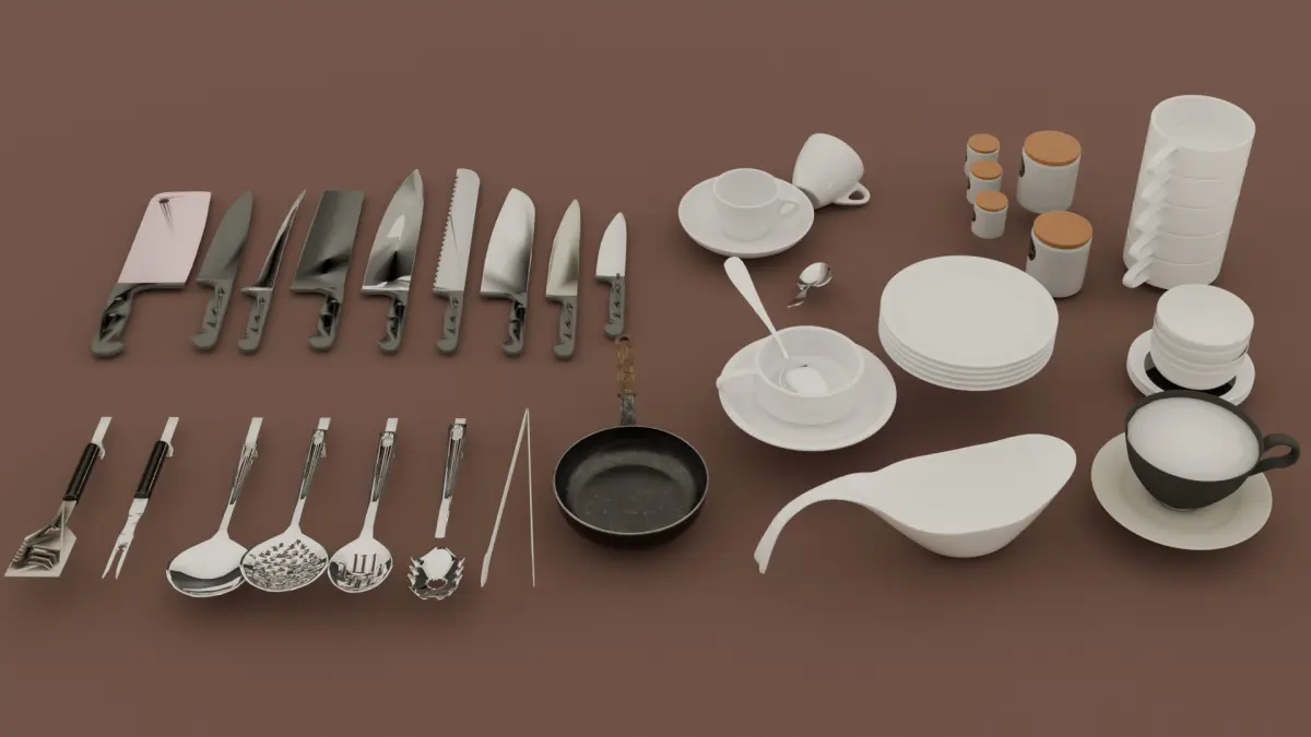 This collection features 50 detailed 3D models of kitchenware, perfect for interior visualization, game development, and product rendering. Designed with precision, each item showcases realistic shapes and proportions, making them ideal for high-quality scenes and animations.