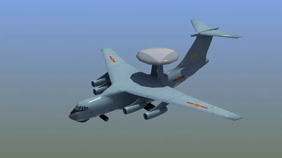 KJ2000 Chinese PLAAF AWACS. Great multipurpose 3D model (ideal for offline rendering or real time uses such as games or simulation). Atlased textures with good UV layout.