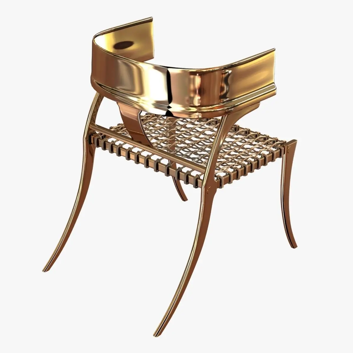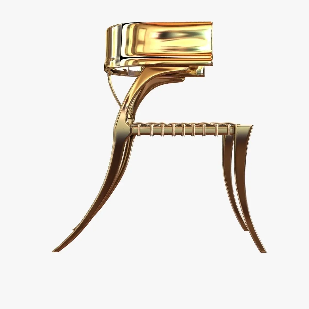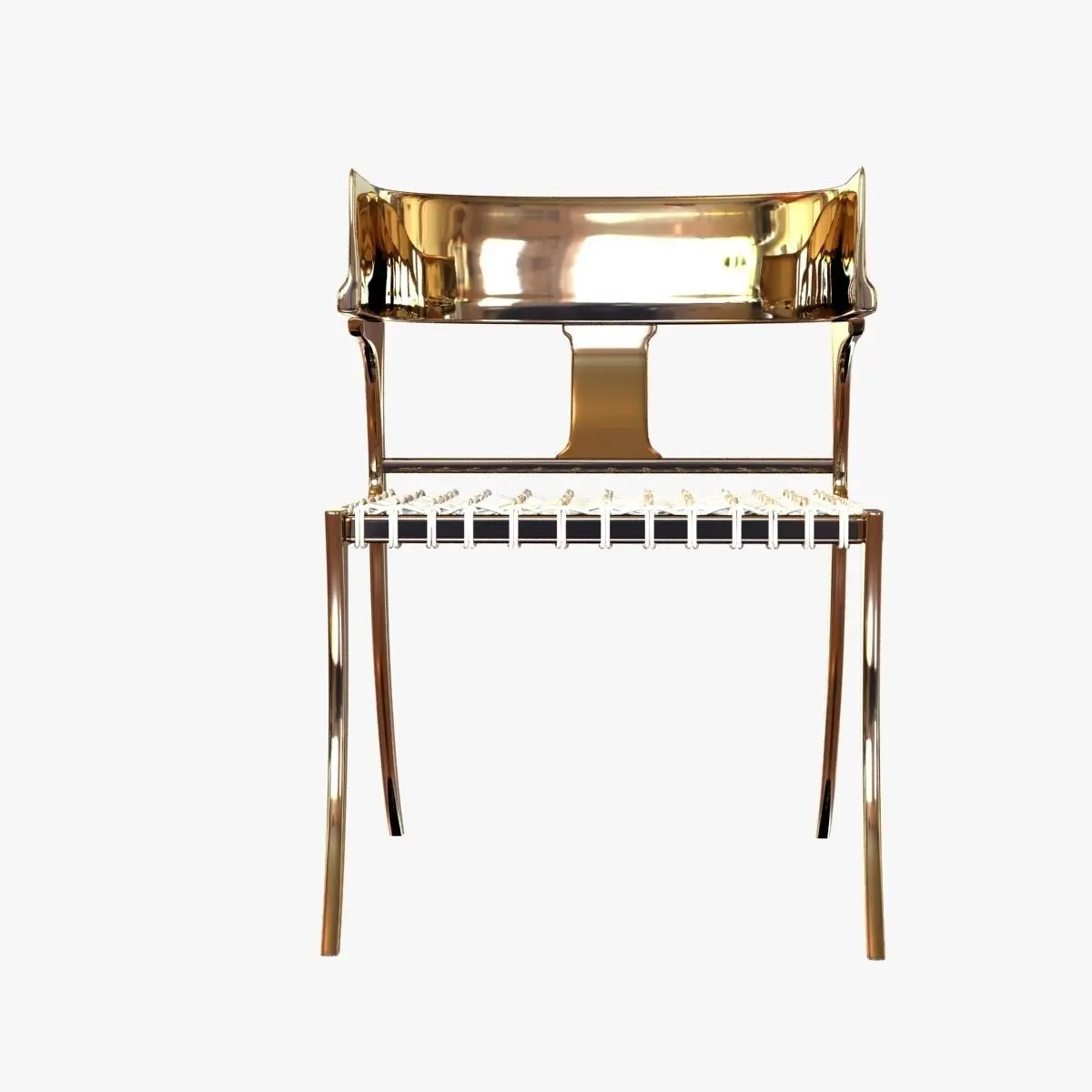 Stunning Klismos lower back chair in brass with handwoven leather- strapping seatEdward Wormley (Designer)Mid-Century ModernUnited StatesDATE OF MANUFACTURE: ContemporaryPERIOD: 21st CenturyMATERIALS AND TECHNIQUES: black lizard, handwoven leather-strappingHEIGHT: 32 in. (81 cm)WIDTH: 22 in. (56 cm)DEPTH: 28 in. (71 cm)SEAT HEIGHT: 18.25 in. (46 cm)Hand made