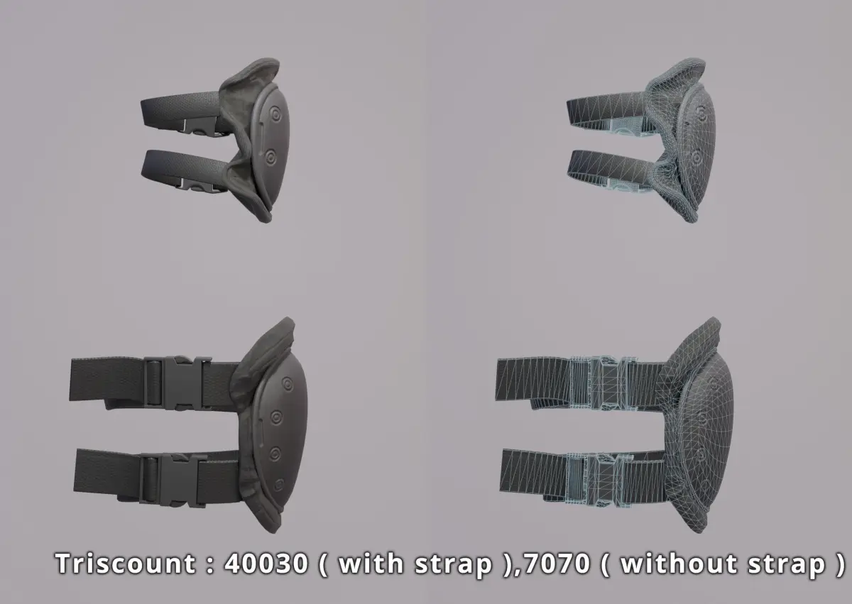 Detailed Mid-poly Knee Pad and Elbow Pad. Good topology for animations, games and lossless silhouette.