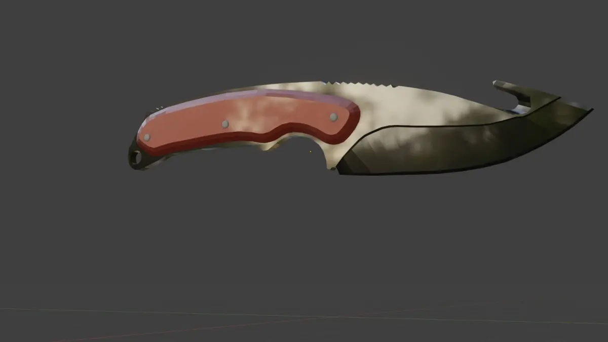 Made in blender 2.9, with polished wood textures on the handle, and very black steel on the blade, as seen in the photo, the textures are made using nodes.