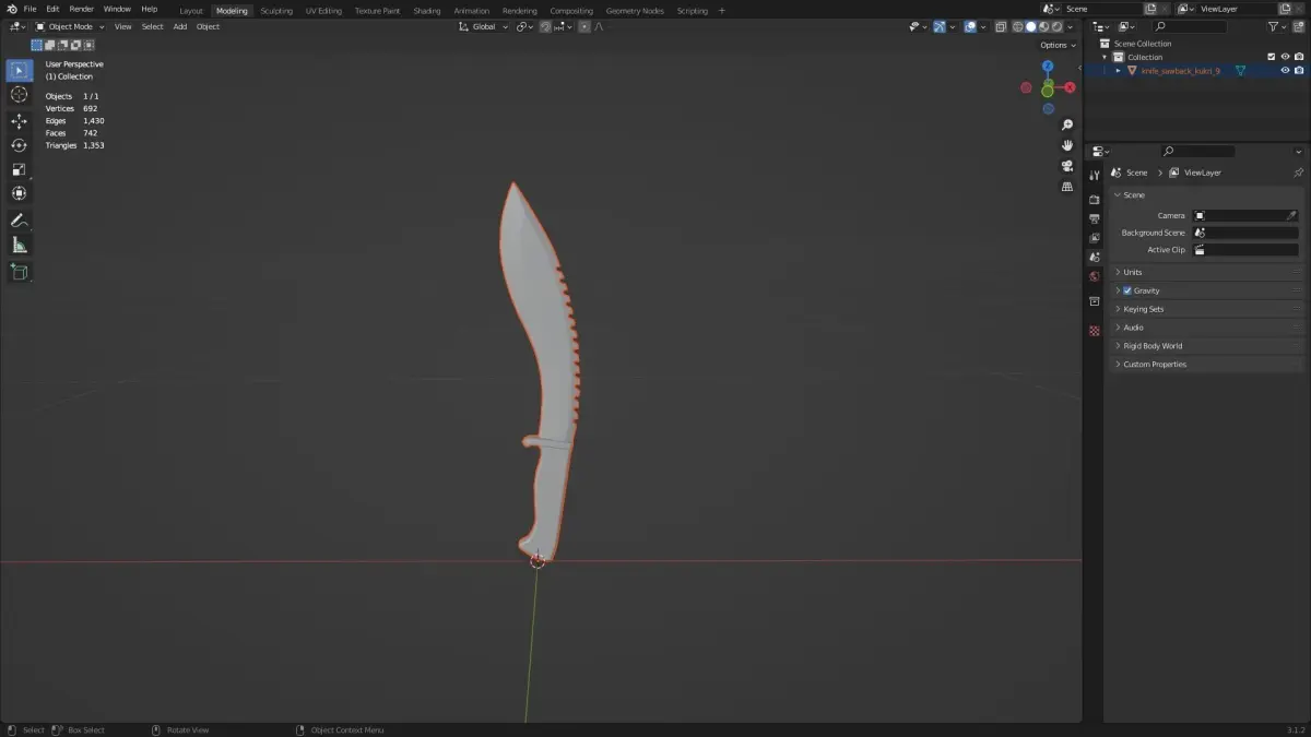 Ringtail Studio presents a game-ready, low-poly model of a serrated knife made of sharp steel with a black handle. The knife has a sheath as well.
