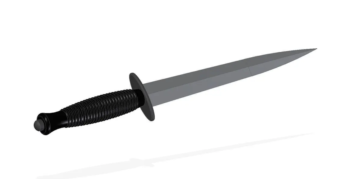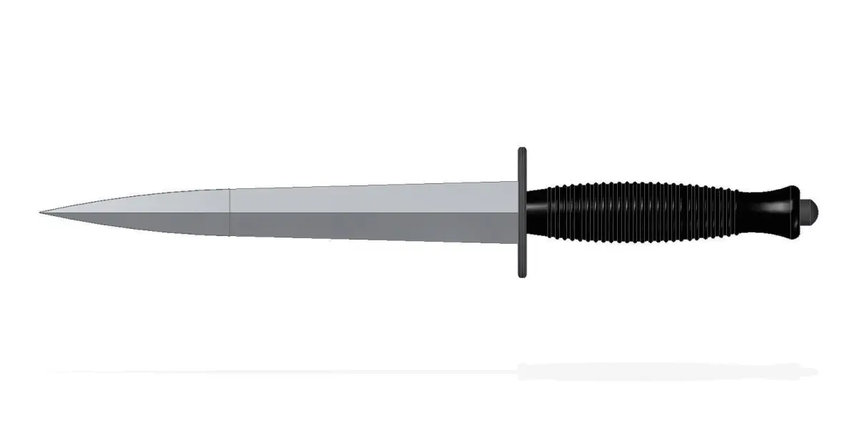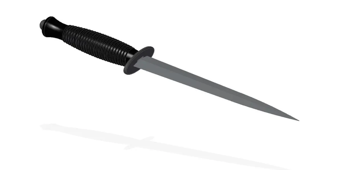 The Fairbairn–Sykes fighting knife is a double-edged fighting knife resembling a dagger or poignard with a foil grip developed by William Ewart Fairbairn and Eric Anthony Sykes in Shanghai based on concepts which the two men initiated before World War II while serving on the Shanghai Municipal Police in China.The F–S fighting knife was made famous during World War II when issued to British Commandos, the Airborne Forces, the SAS and many other units, especially for the Normandy landings in June 1944. With its acutely tapered, sharply pointed blade, the F–S fighting knife is frequently described as a stiletto, a weapon optimised for thrusting, although the F–S knife is capable of being used to inflict slash cuts upon an opponent when its cutting edges are sharpened according to specification. The Wilkinson Sword Company made the knife with minor pommel and grip design variations.