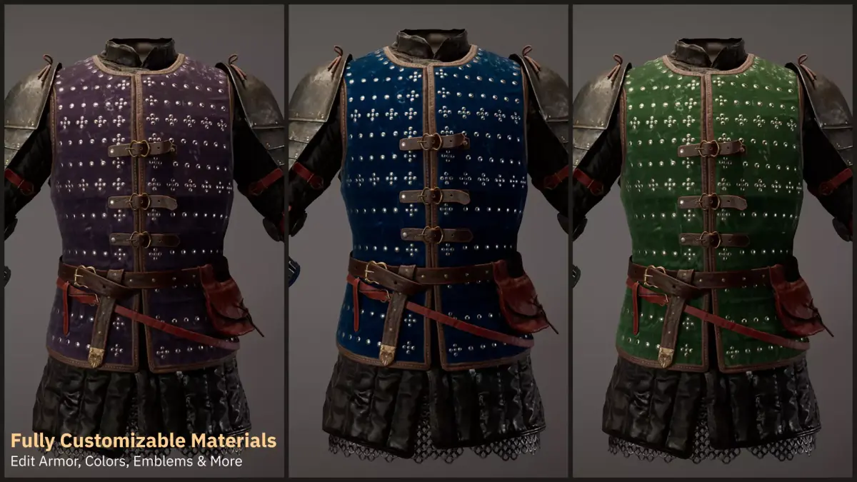 Empower your players — or your dev pipeline — with a user-friendly UI that allows you to fully customize the knight’s appearance directly inside the engine. Every detail of the character is modular and tweakable, offering full control over: