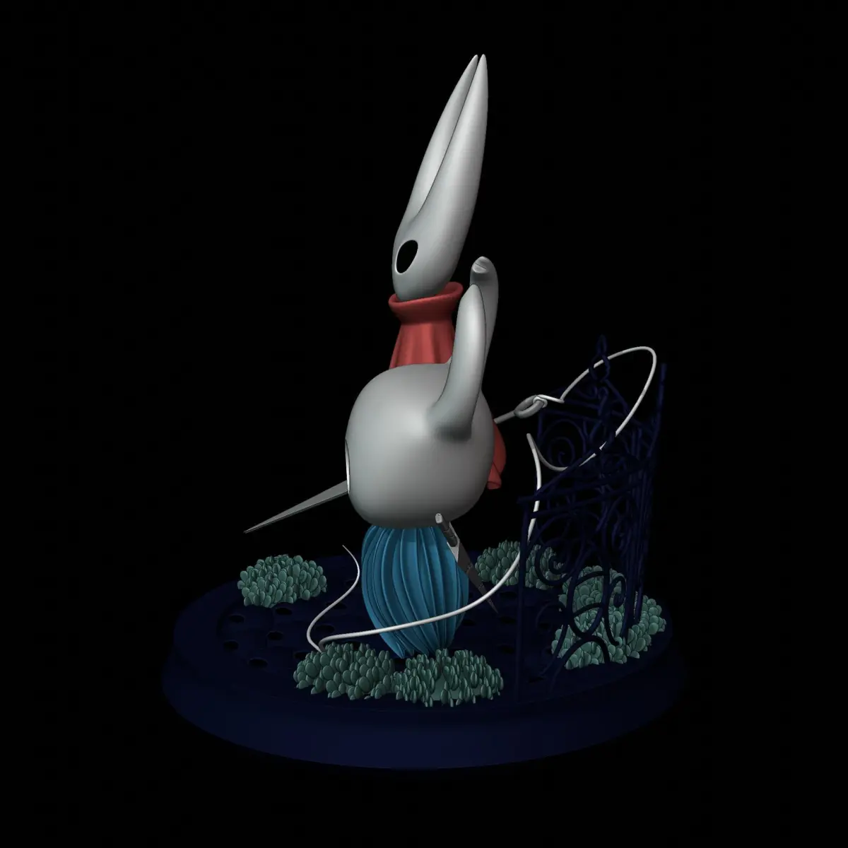 Une sculpture numérique de 'Knight' un petit chevalier insecte avec une épée cassée et son manteau bleu caractéristique et 'Hornet' recouvert de son manteau rouge et avec son aiguille pour recoudre ses ennemis. Tout droit sorti du chef-d'œuvre de jeu Team Cherry Hollow Knight. Comprend deux versions des personnages :