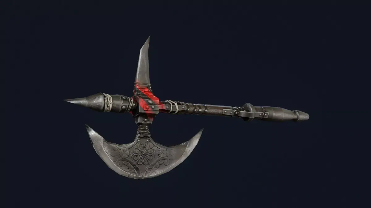 The design features a heavy double-edged axe head combined with a reinforced handle built for strength and impact. The silhouette emphasizes power, balance, and authority, making it suitable for knight characters, royal soldiers, champions, bosses, and heavily armored fighters.