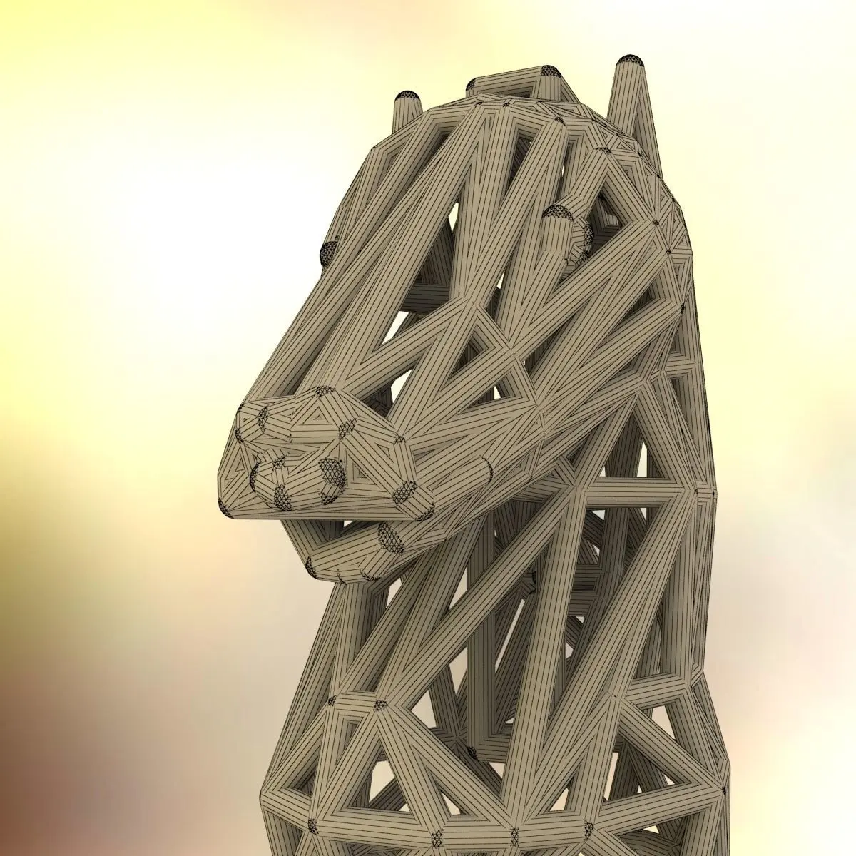 The knight (♘,♞) is a piece in the game of chess, representing a knight (armored cavalry). It is normally represented by a horse's head and neck. Each player starts with two knights, which begin on the row closest to the player, between the rooks and bishops. Colloquially it is sometimes referred to as a horse, which is also the translation of the piece's name in several languages. Some languages refer to it as the jumper, reflecting the knight's ability to move over pieces in its way: Polish skoczek, Danish/Norwegian springer, German Springer, Luxembourgish Sprénger, Slovene skakač. In Sicilian it is called sceccu, a slang term for a donkey, derived from the Arabic sheikh, who during the Islamic period rode from village to village on donkeys collecting taxes.[1]The knight move is unusual among chess pieces. It moves to a square that is two squares away horizontally and one square vertically, or two squares vertically and one square horizontally. The complete move therefore looks like the letter L. Unlike all other standard chess pieces, the knight can jump over all other pieces (of either color) to its destination square.[2][3] It captures an enemy piece by replacing it on its square. The knight's ability to jump over other pieces means it tends to be at its most powerful in closed positions, in contrast to a bishop. The knight moves alternately to light and dark squares. _Notes:3d print ready , 3ds, wrl , obj, max, stl , fbx, dwg and dfx formats are included, the 3ds format is low poly , rest is high poly, hope you like the model and dont forget to leave a review._