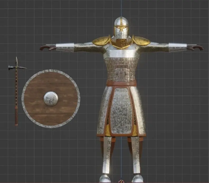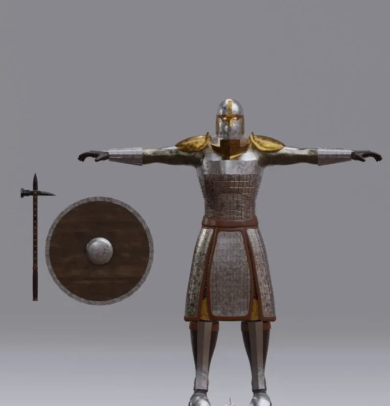 - The project has two materials: Knight_Material and Weapons_Materials, both are baked on 4k textures included on this purchase.(Color, Rough, Normal and Metalness)