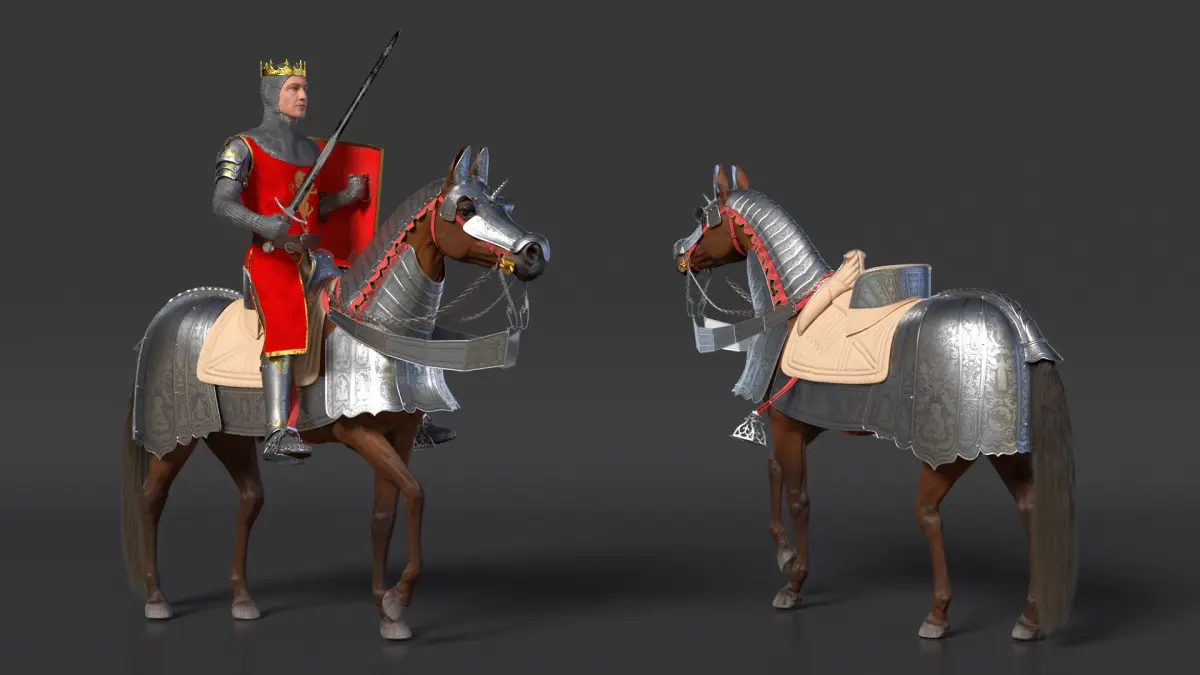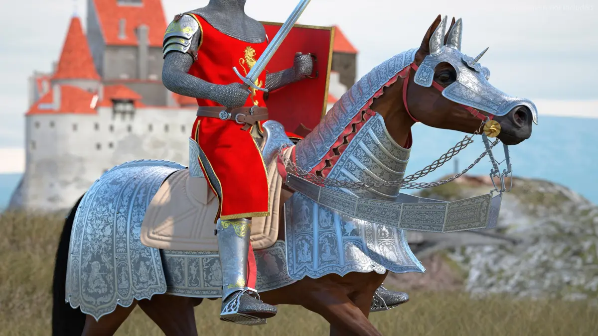 Knight King on Horseback in Armor Fur is a high quality, photo real 3d model that will enhance detail and realism to any of your rendering projects. The model has a fully textured, detailed design that allows for close-up renders, and was originally modeled in 3ds Max 2020 and rendered with V-Ray. Renders have no postprocessing!