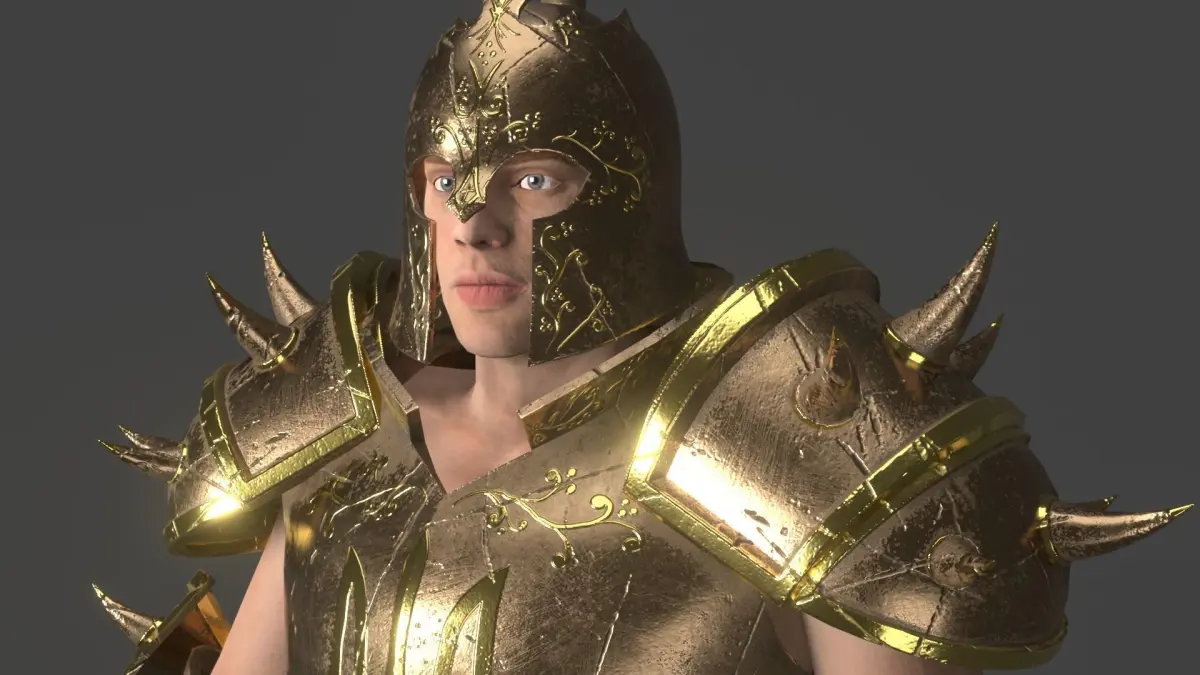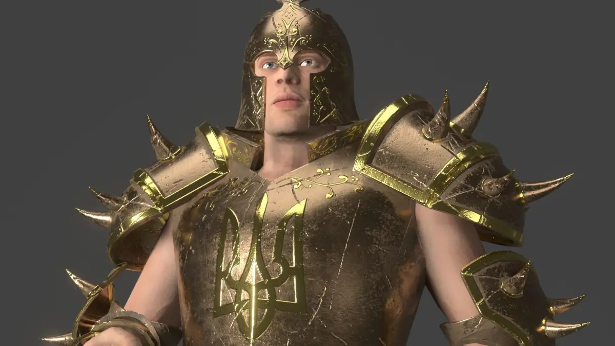 Knight warrior character with modular armor parts in medieval Ukrainian folk style for Unreal Engine.