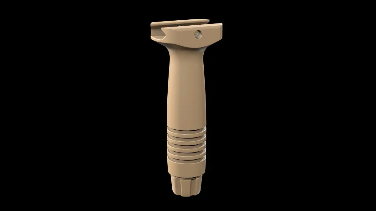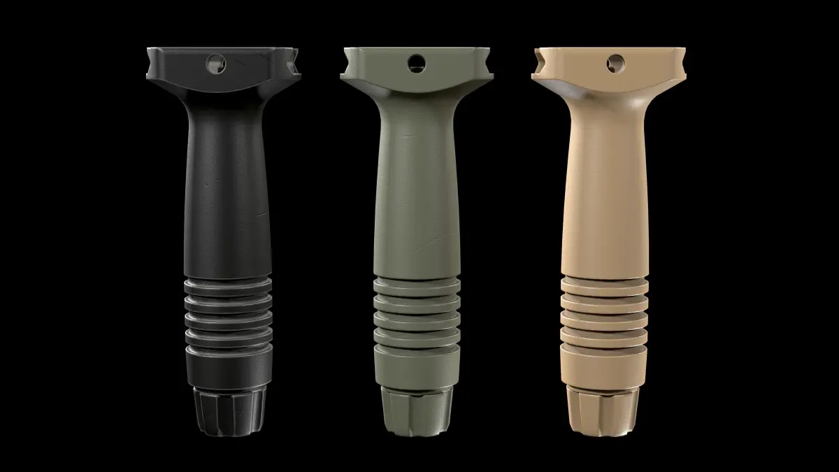 Knight’s Armament Forward Grip Vertical Grip made in real size, mounted on a picatinny rail, has 3 texture sets in different colors (Black, OD Green, Tapue)