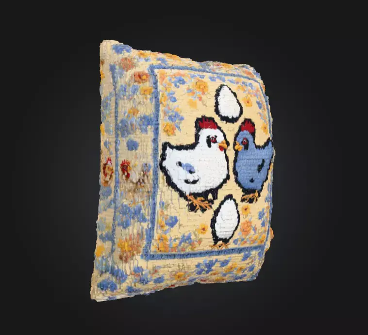 Whether placed on a sofa, bed, or rustic chair, the Knitted Pillow with Chicken Pattern brings personality and charm to any scene in games, VR/AR experiences, animations, or interior design visualizations.